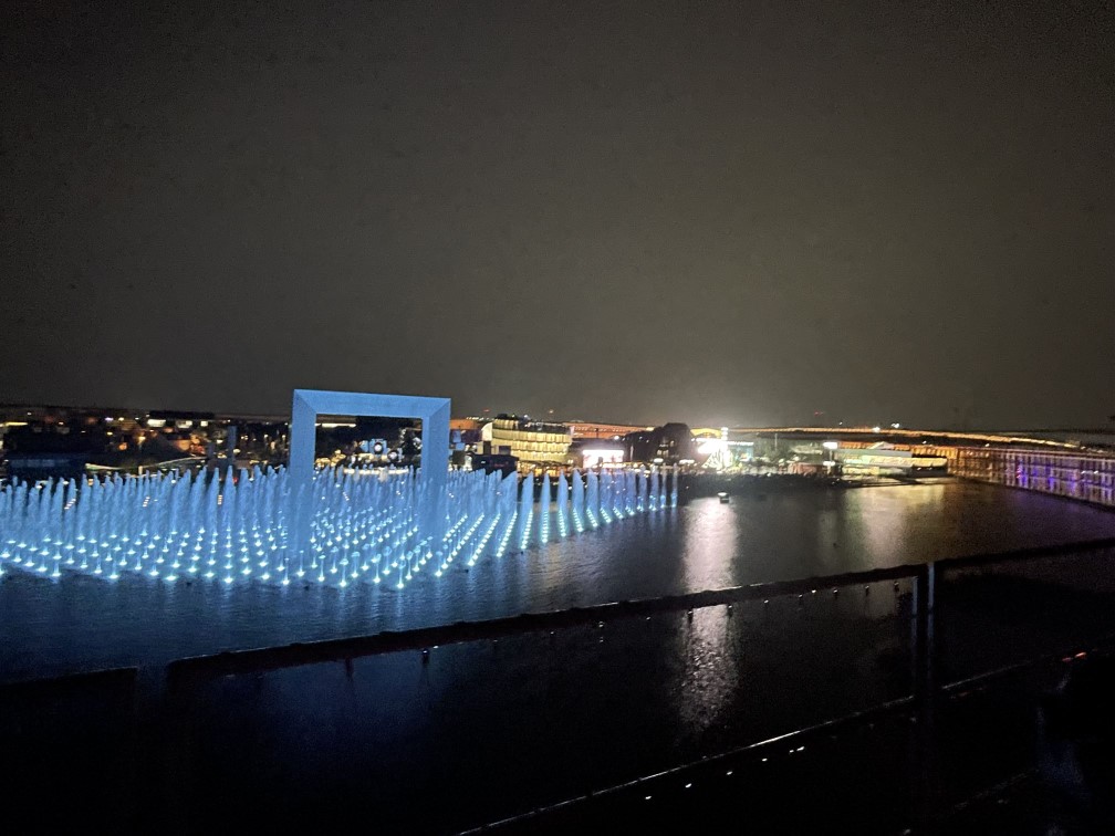 夜には大屋根リングから噴水・プロジェクションマッピングショーを鑑賞。
