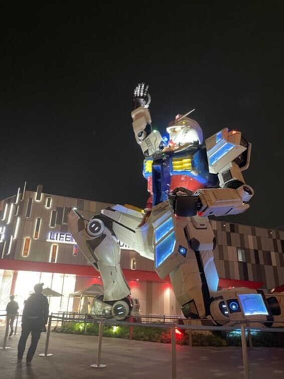 ガンダムも夜になると光ります。カッコイイ!!