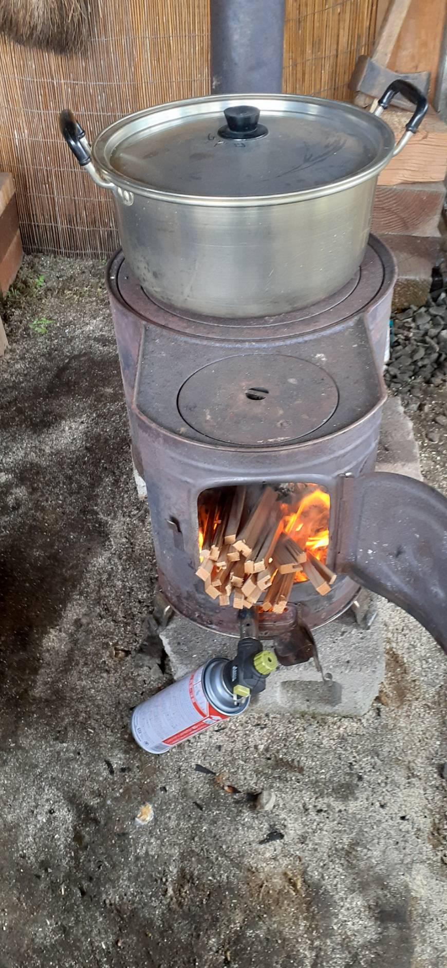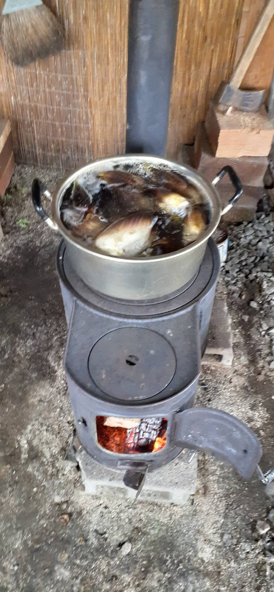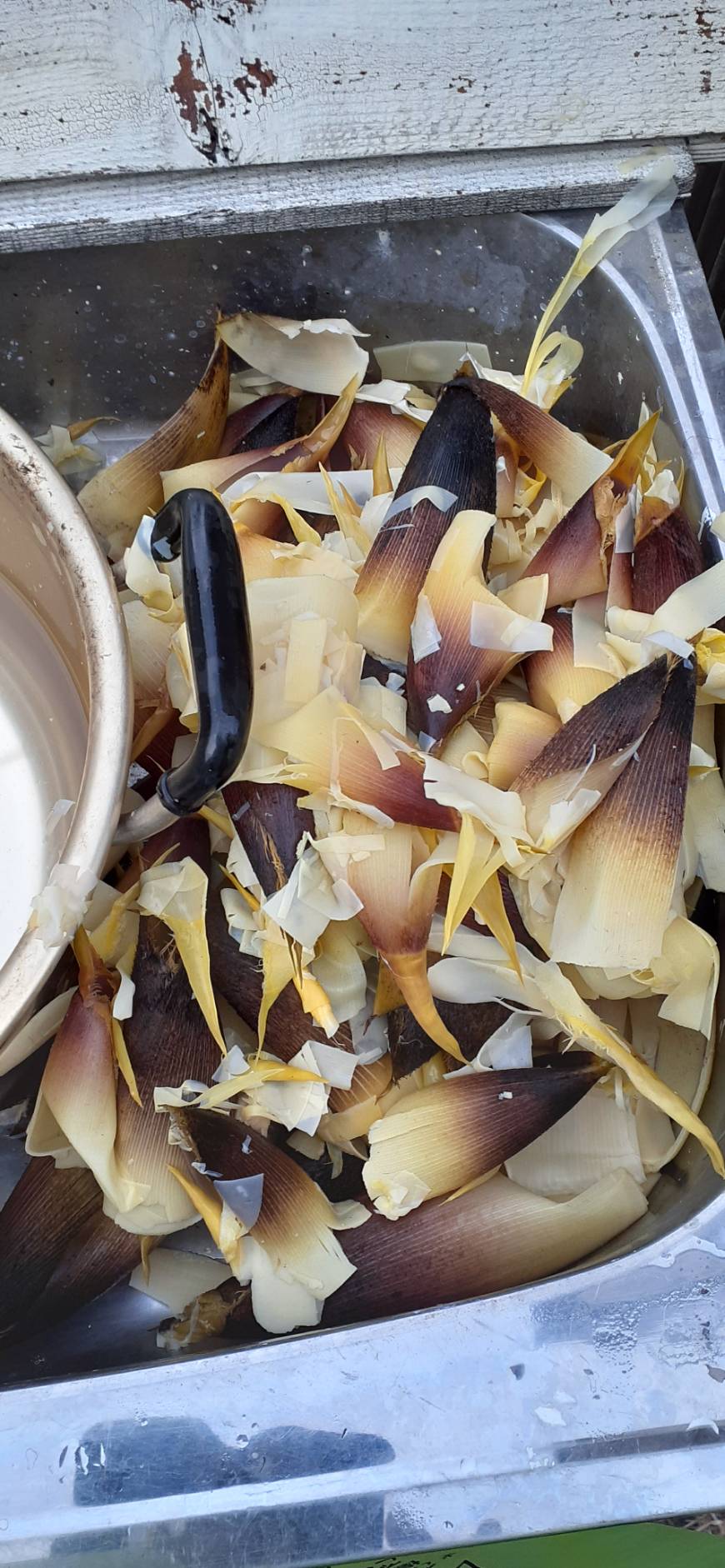 腰も痛くなり、あとはいくつかわけてもらって自宅のストーブであく抜きです