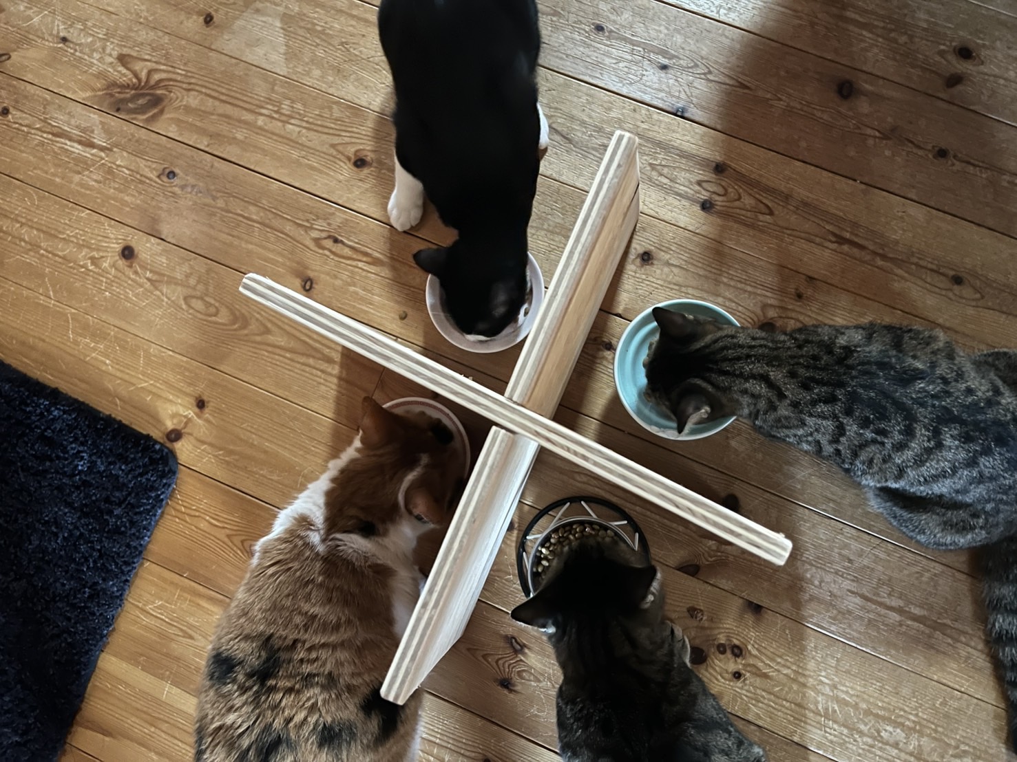 この十字になっている板があれば、猫ちゃんたちは自分のごはんに集中できて、