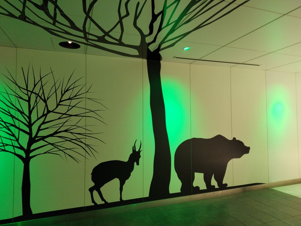 全長290mあり、壁面に生き物たちが描かれています。