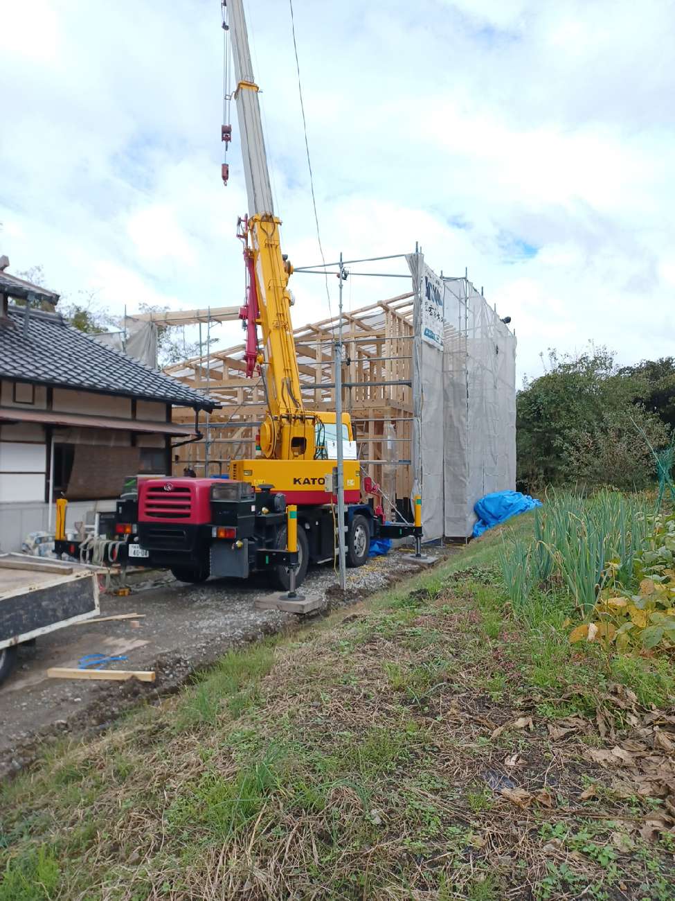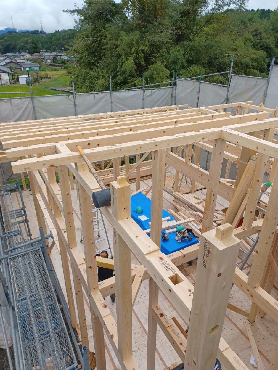 1日目は皆様の頑張りもあり、建物の躯体の施工・屋根下地の垂木、