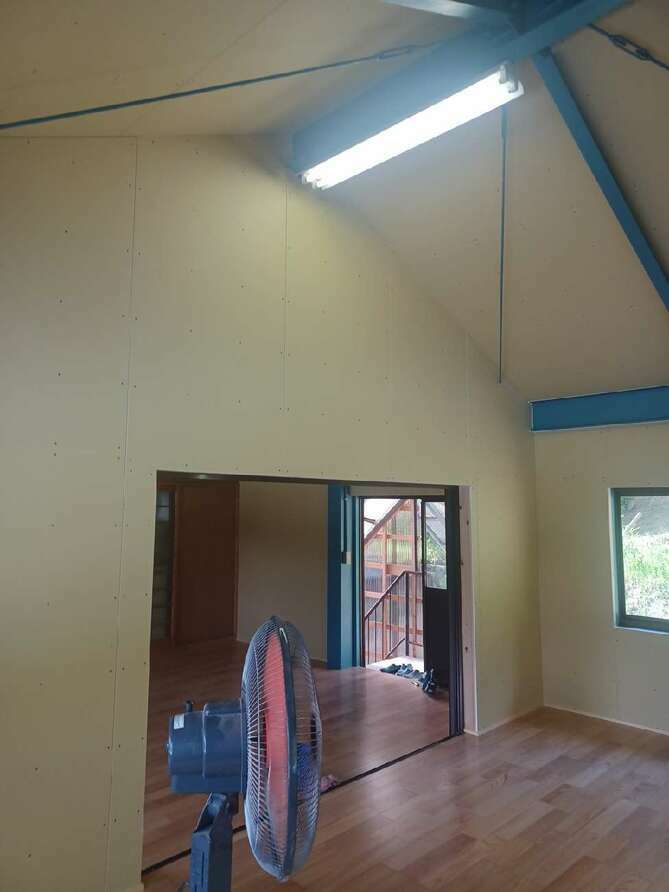 部屋に埃が入らないよう天井や壁にプラスターボードを貼ること、