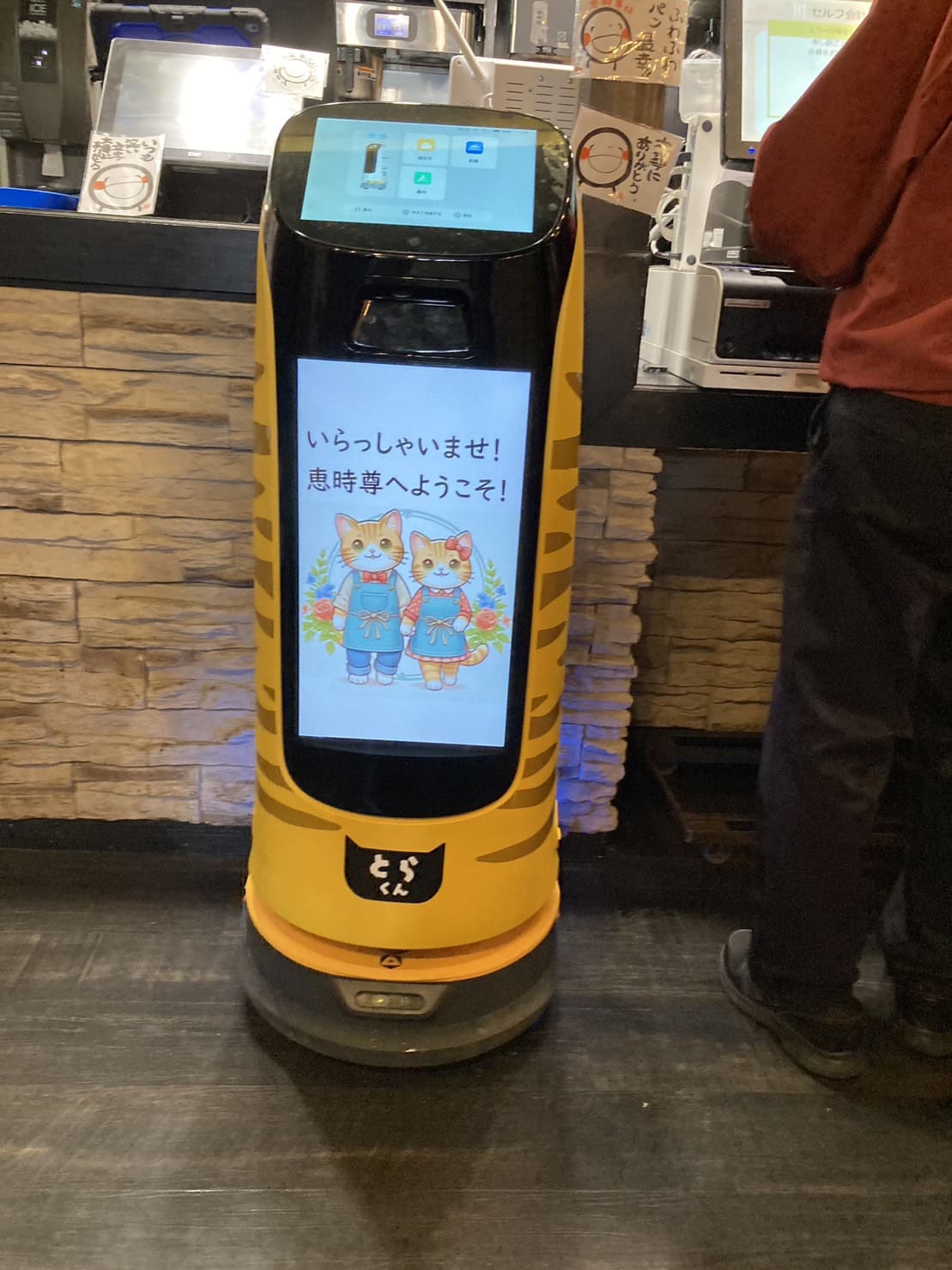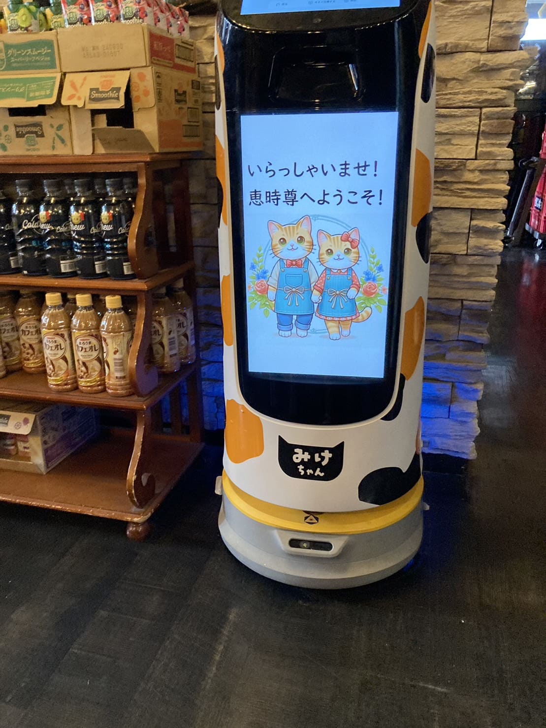 恵時尊さんでは、注文したものを猫ちゃんロボットが届けにきてくれます。