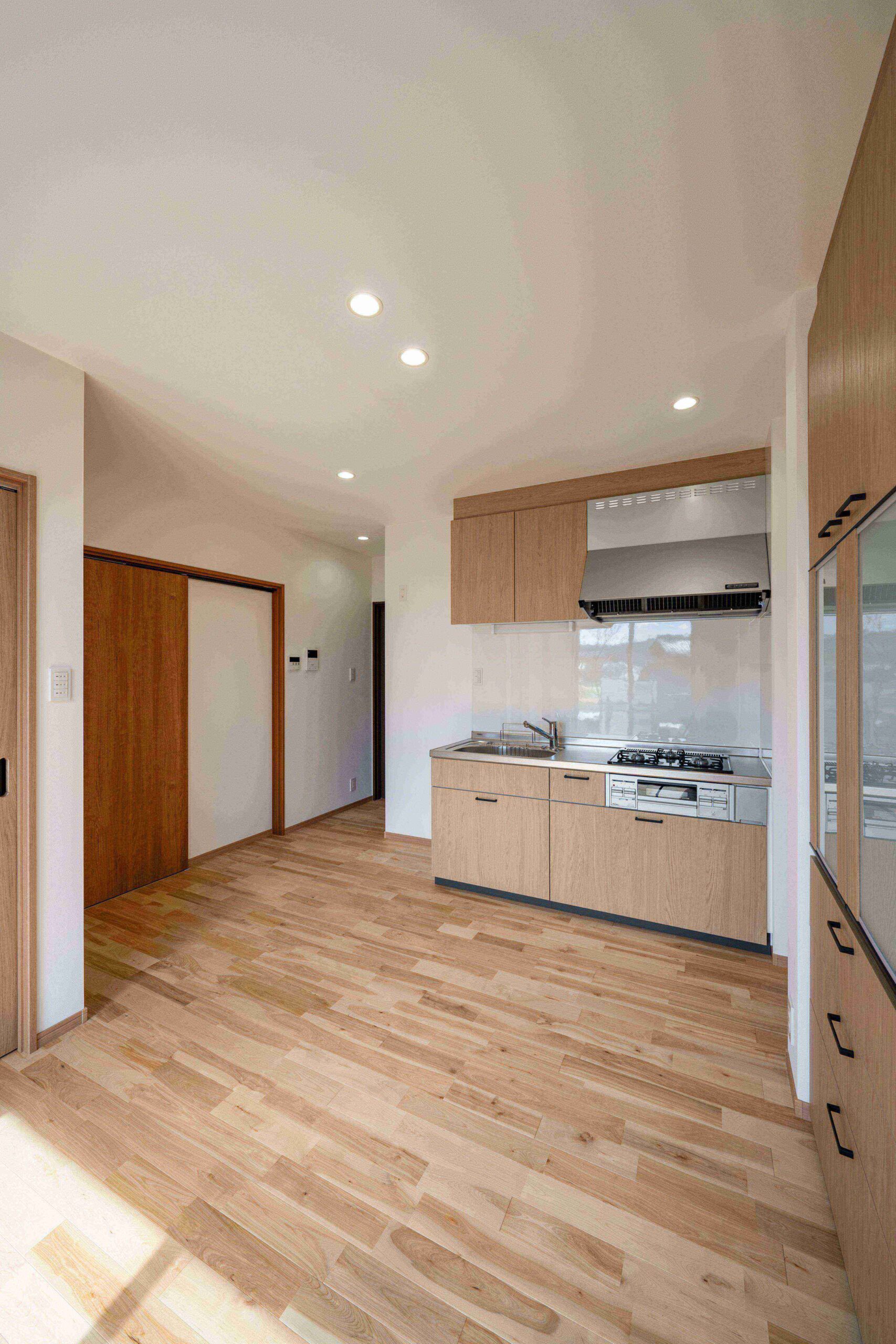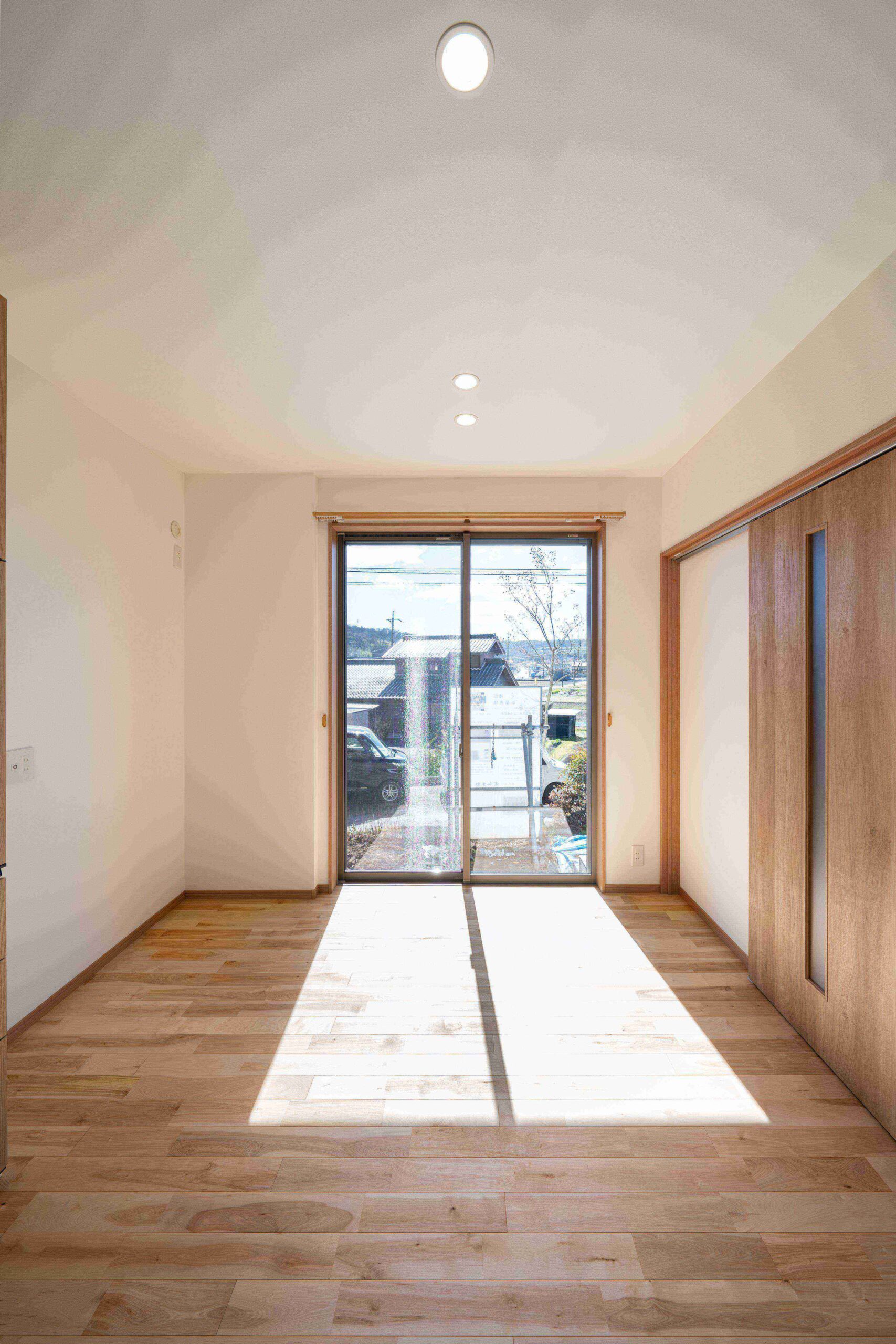 内観は、無垢のバーチ材フローリングを使用したナチュラルスタイル。