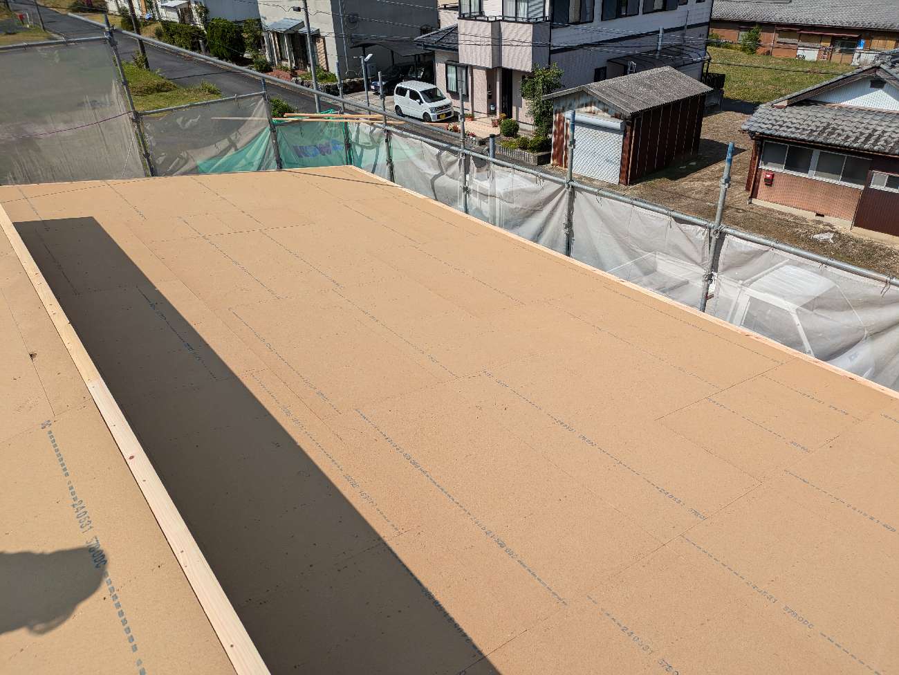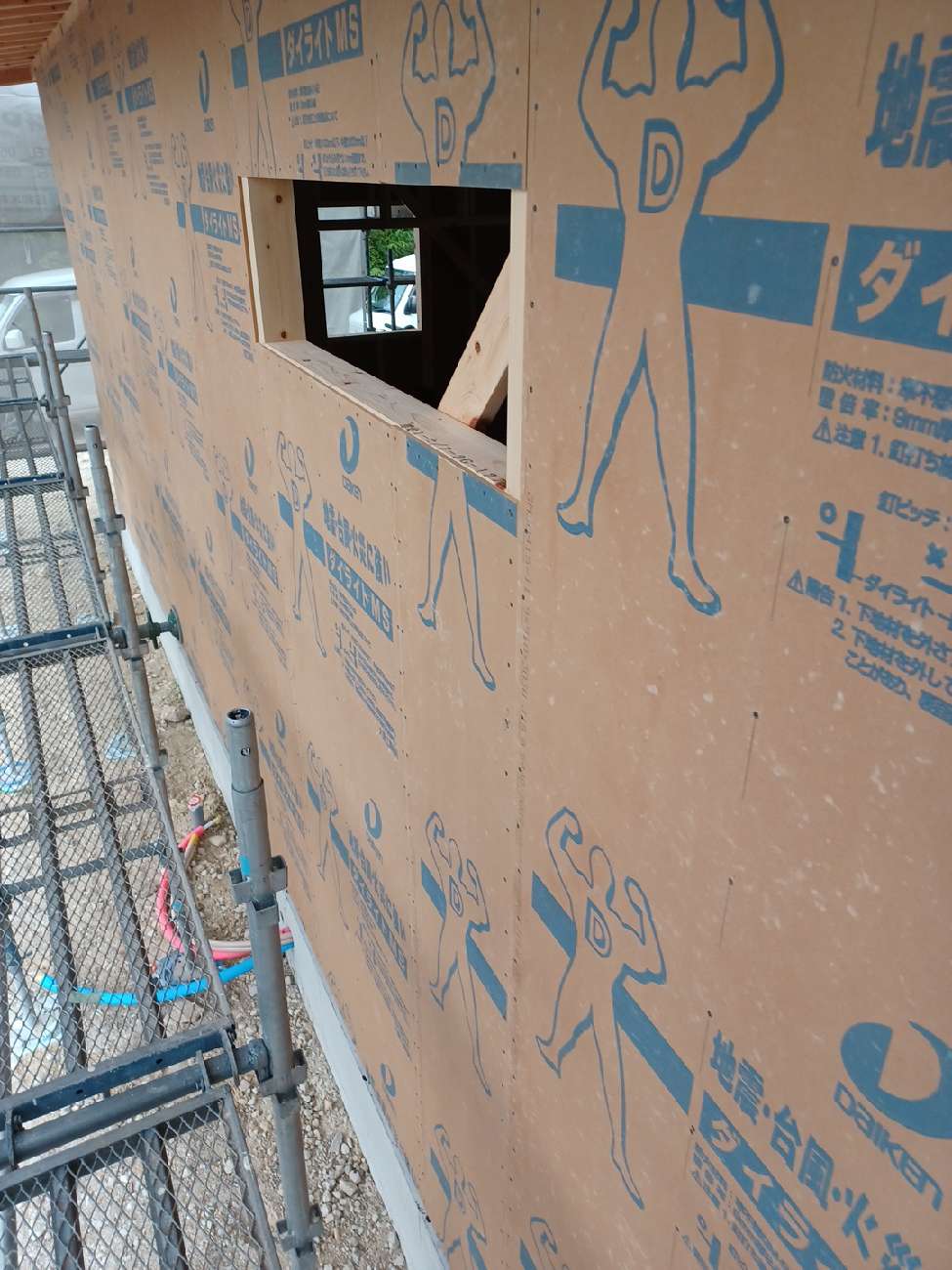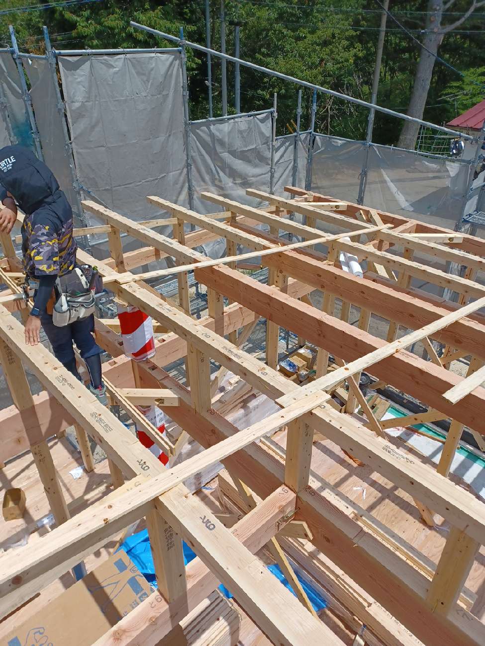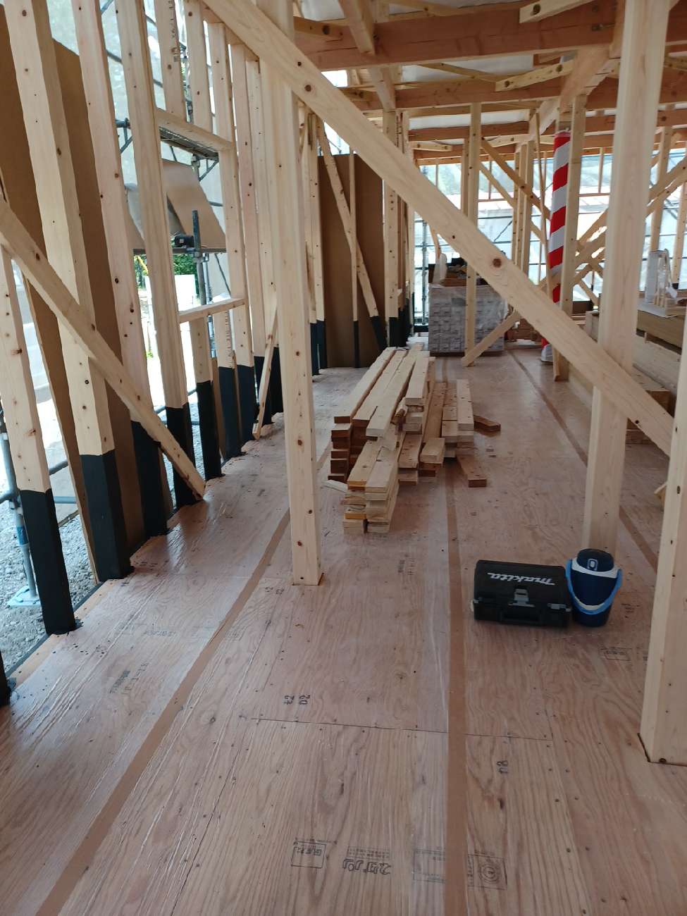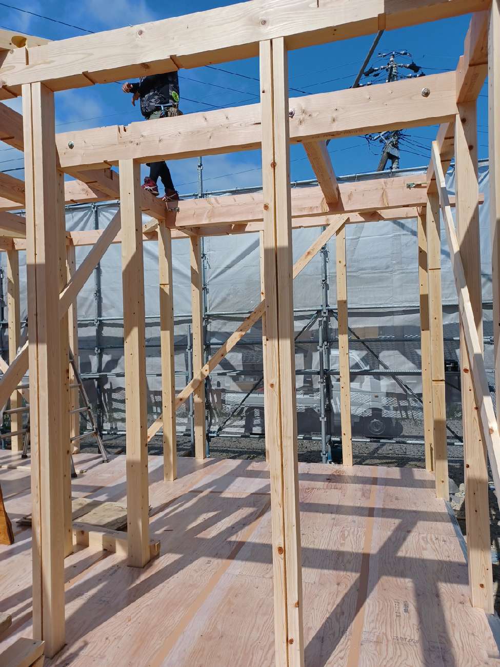 その後は壁の耐力壁の下地を施工して建て方作業は順調に進みました。