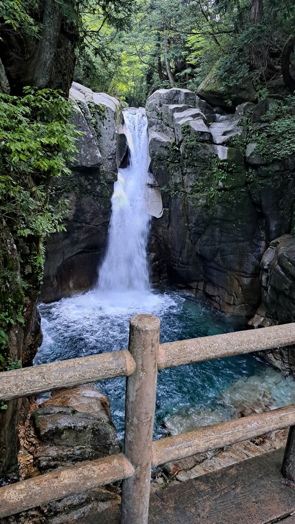一般車通行禁止の場所からしばらく歩いた先にある銅穴の滝