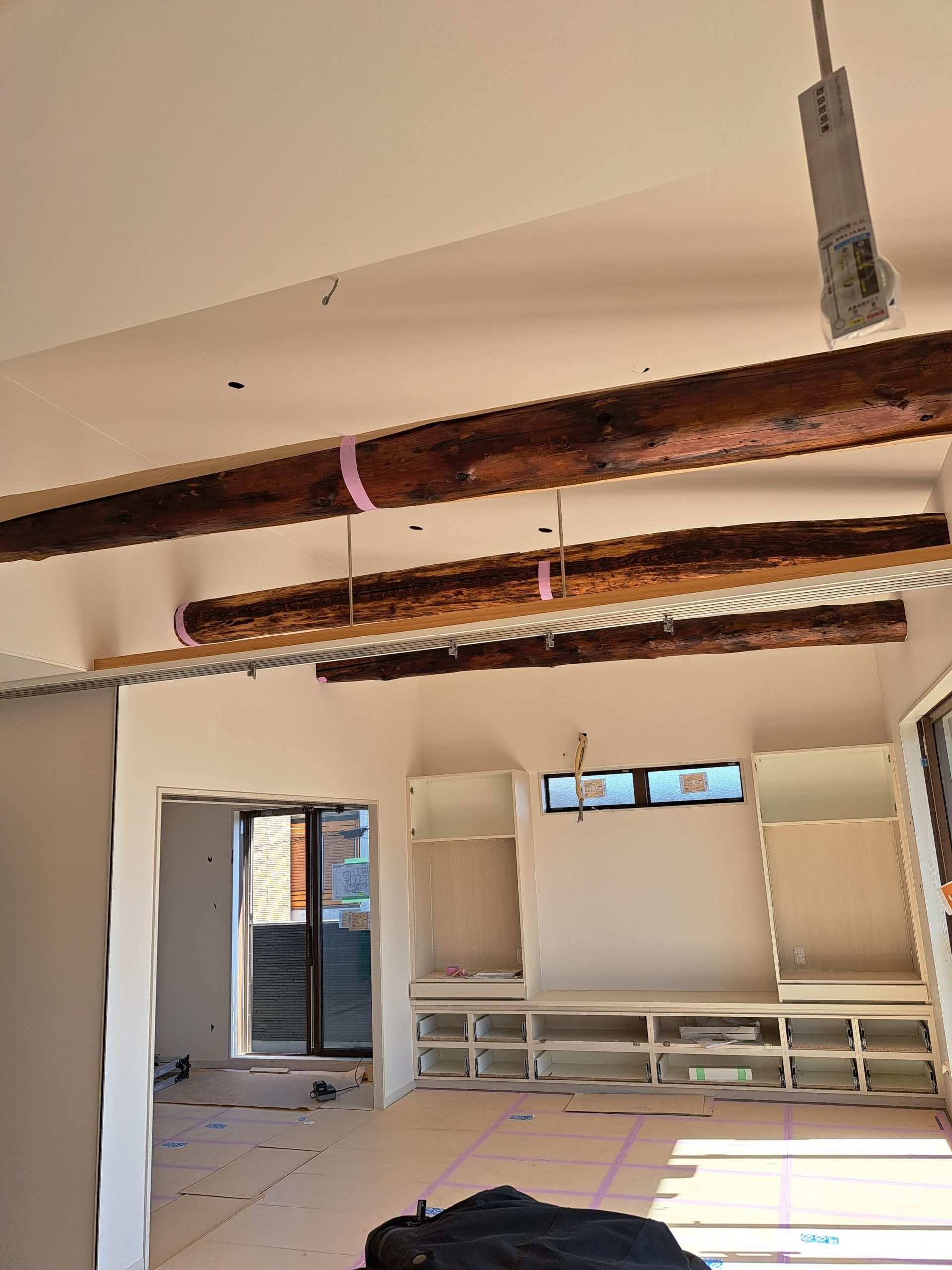 大工さんの造作が完了し、今度はクロス屋さんが