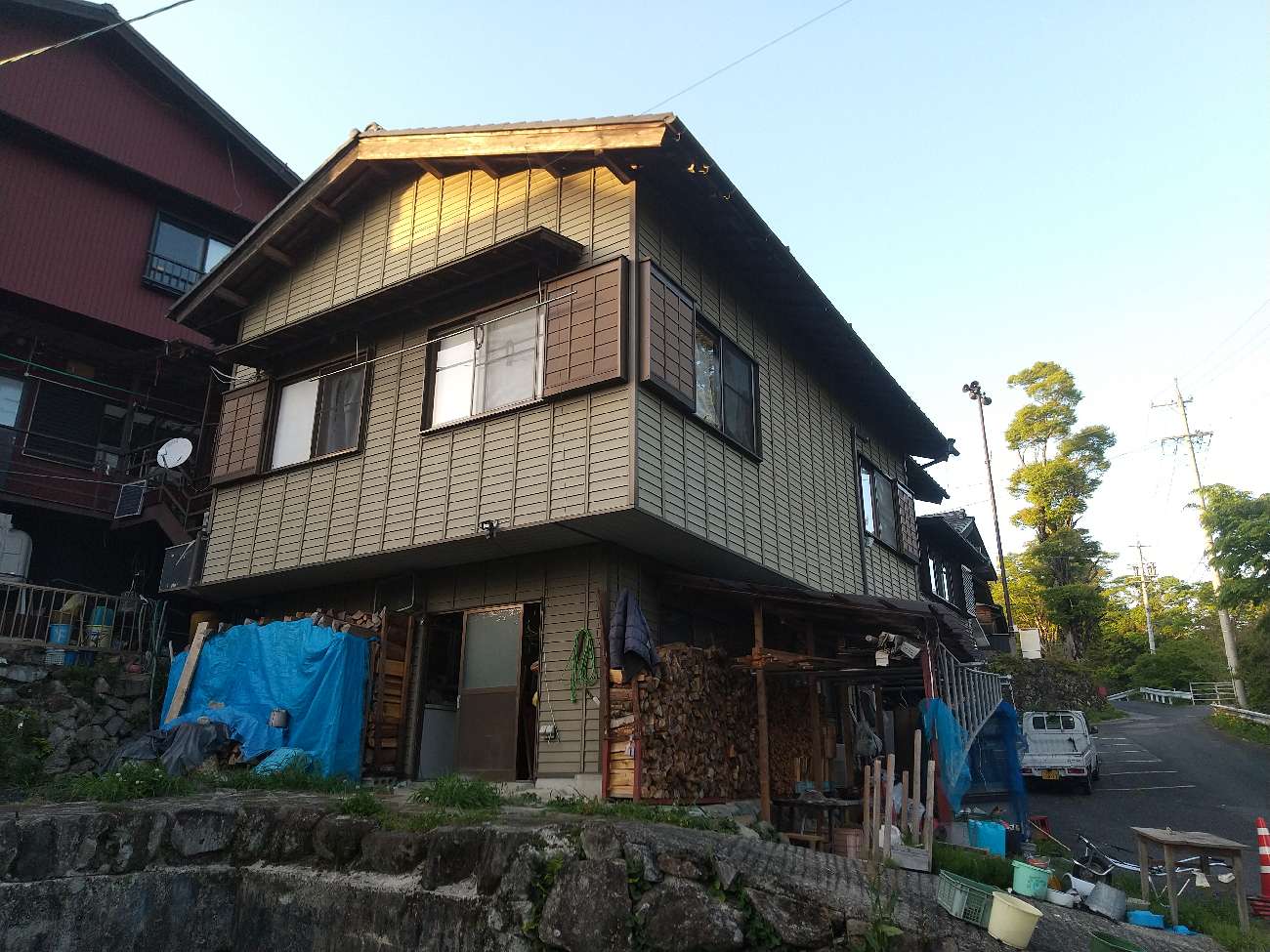 雨風を防ぐため、まずは外回りを優先。