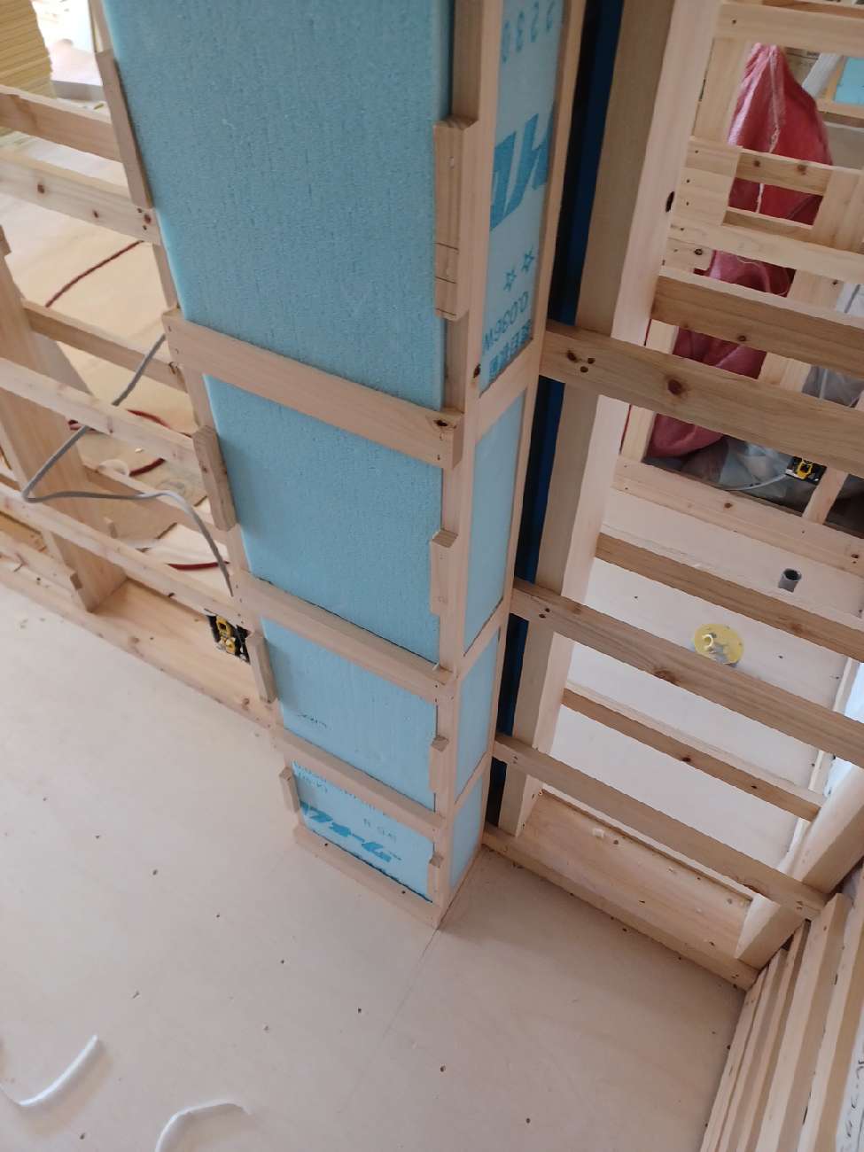 今回は鉄骨躯体の為、鉄骨柱にも断熱をつけ