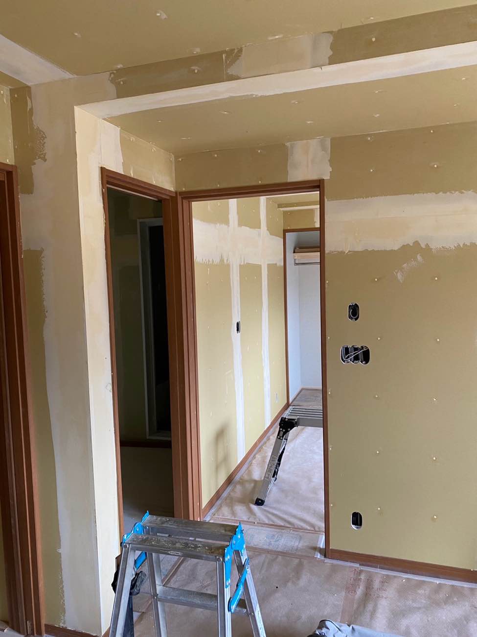 壁下地にパテを施工して壁紙のクロスを貼っていきます。