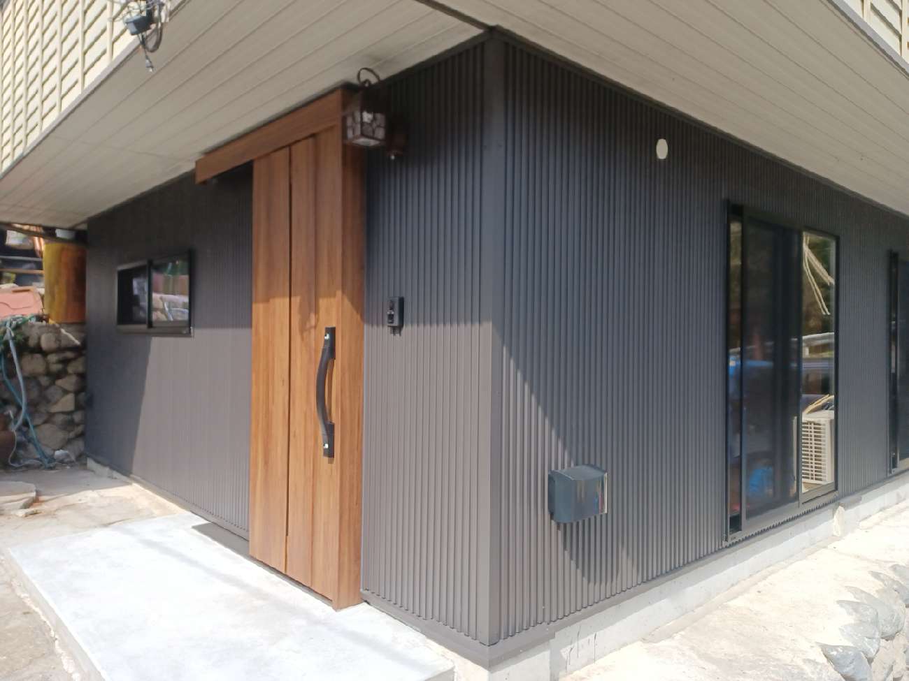 黒のガルバリウムを施工したシンプルモダンスタイルになっています!