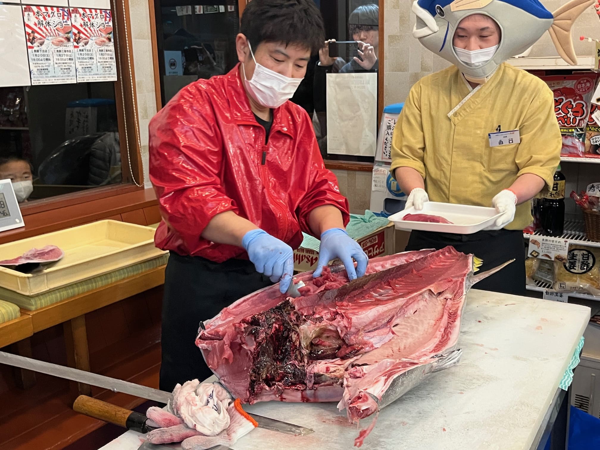 「マグロの解体ショーやりまーす!」
