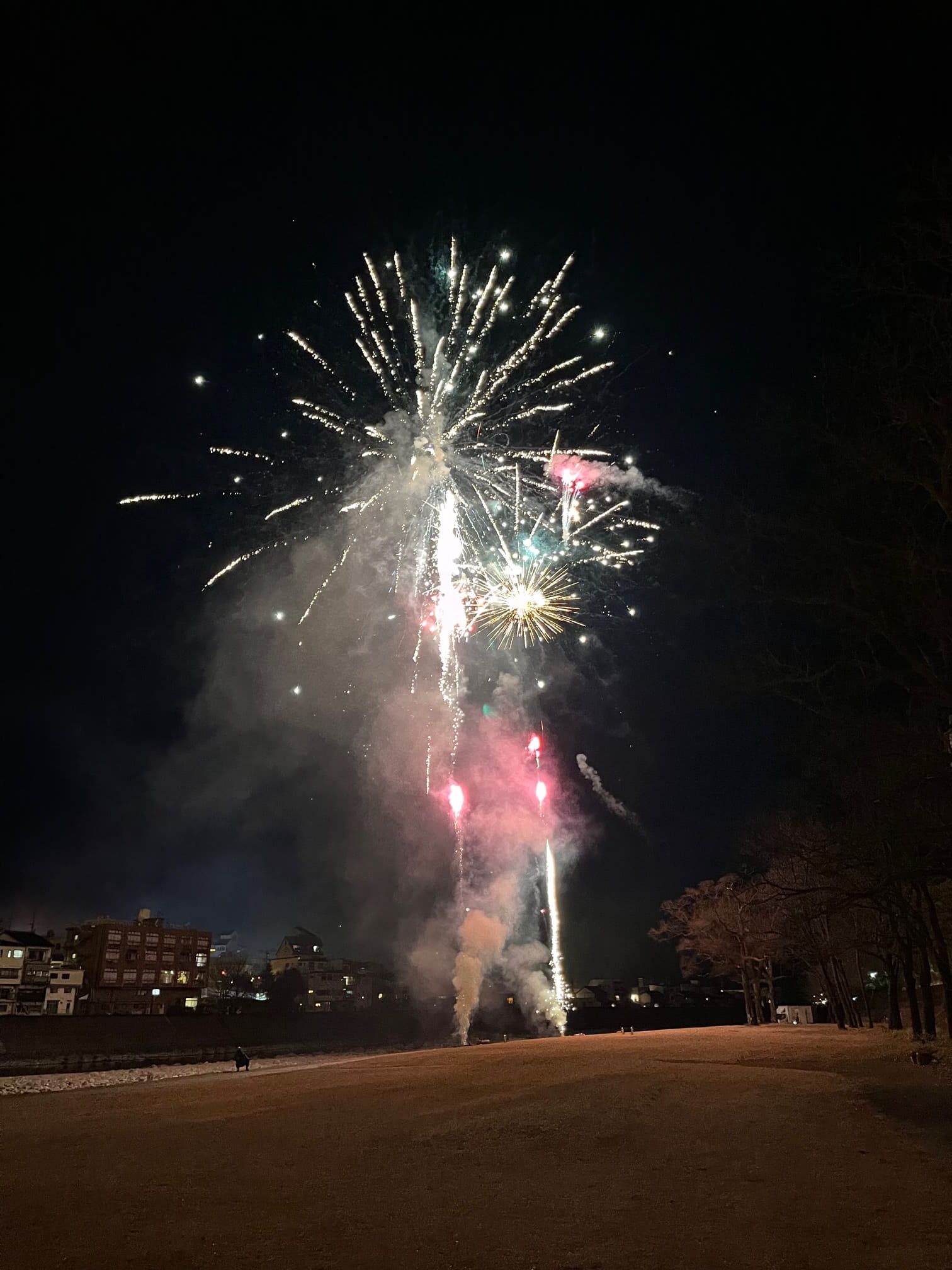 橋の下で打ち上げますが、至近距離で見ることができました!