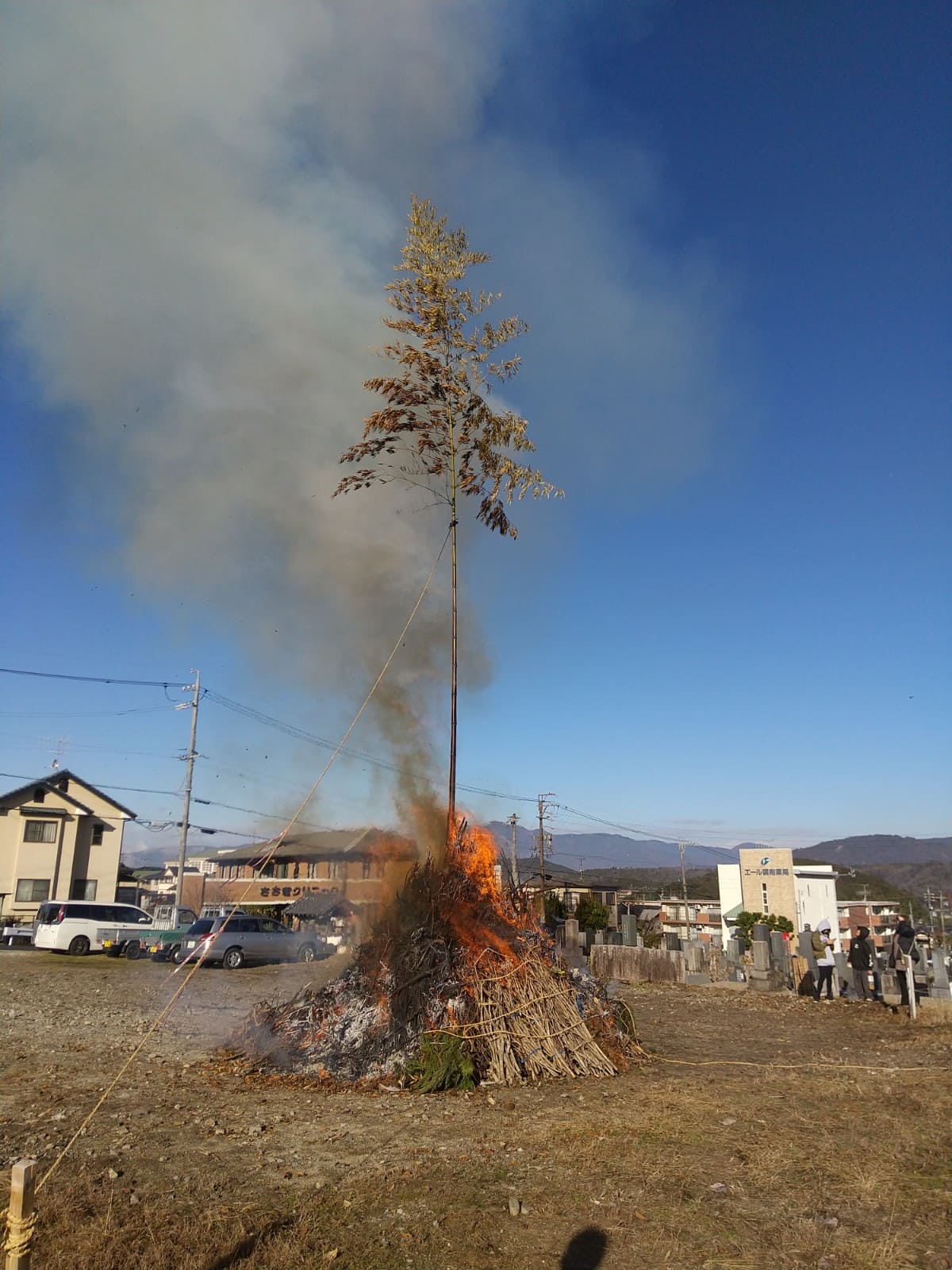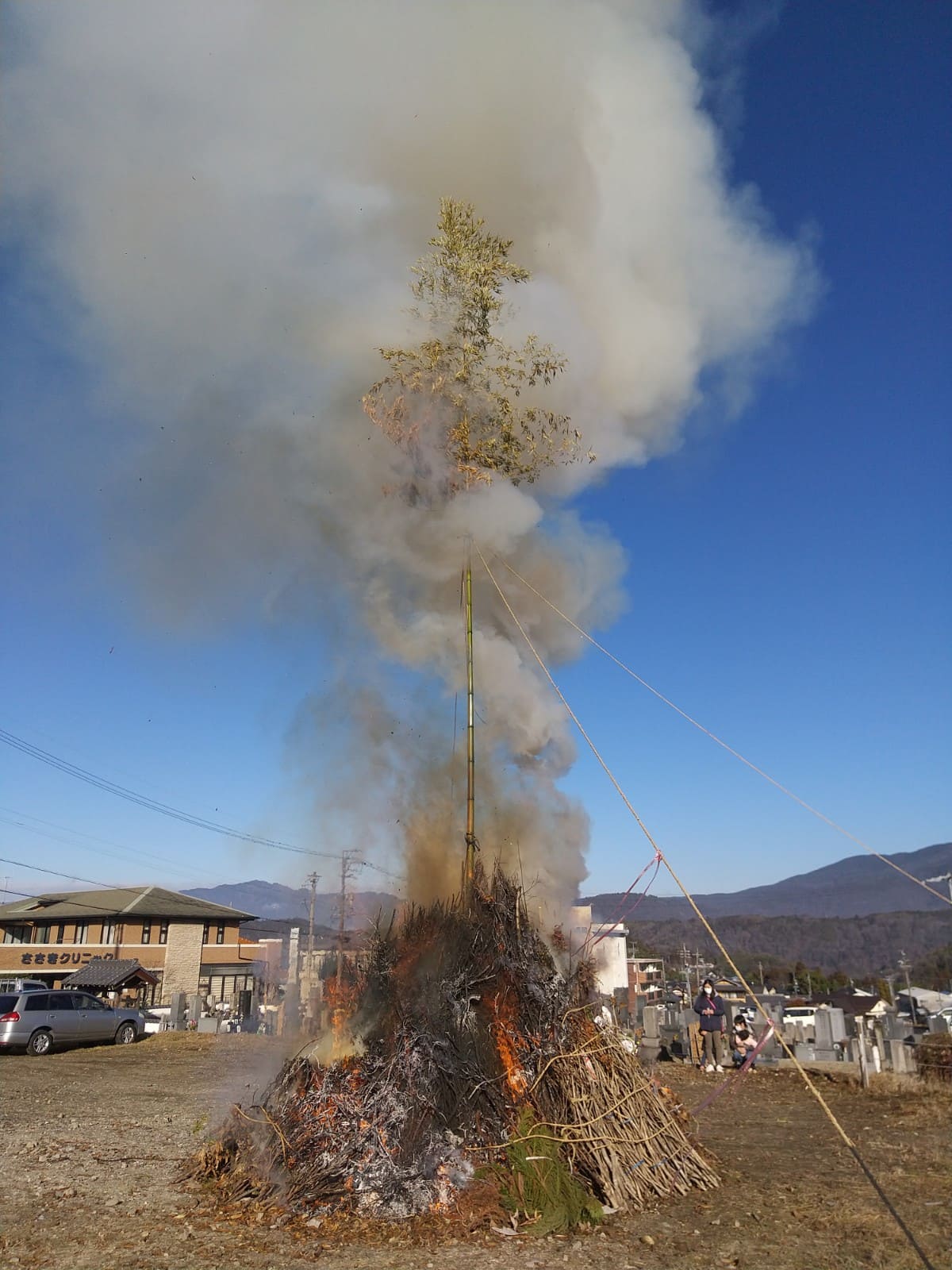 どんど焼きは、しめ縄やお正月飾り、