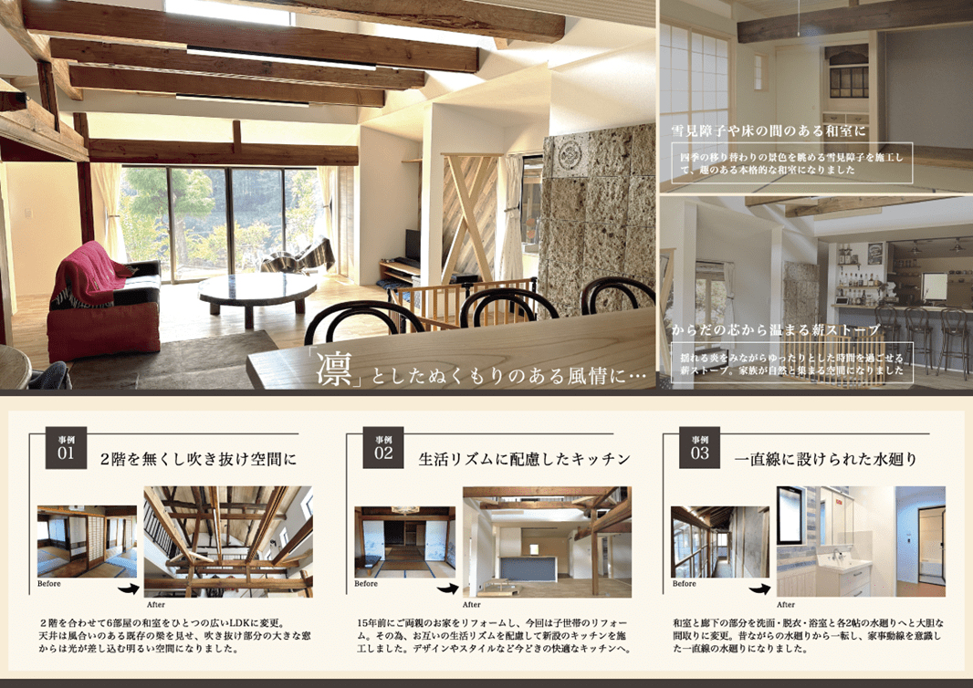 古き良き風合いのある梁や現代の生活スタイルに合った間取り変更など