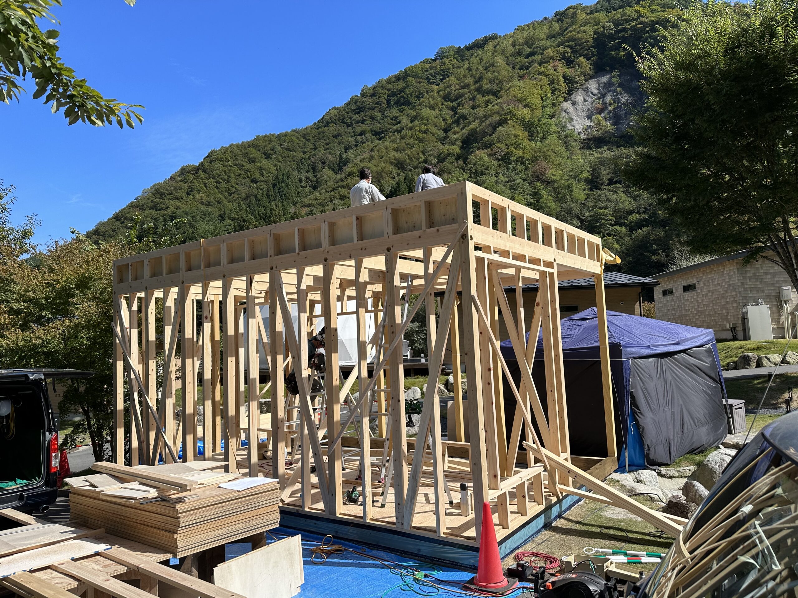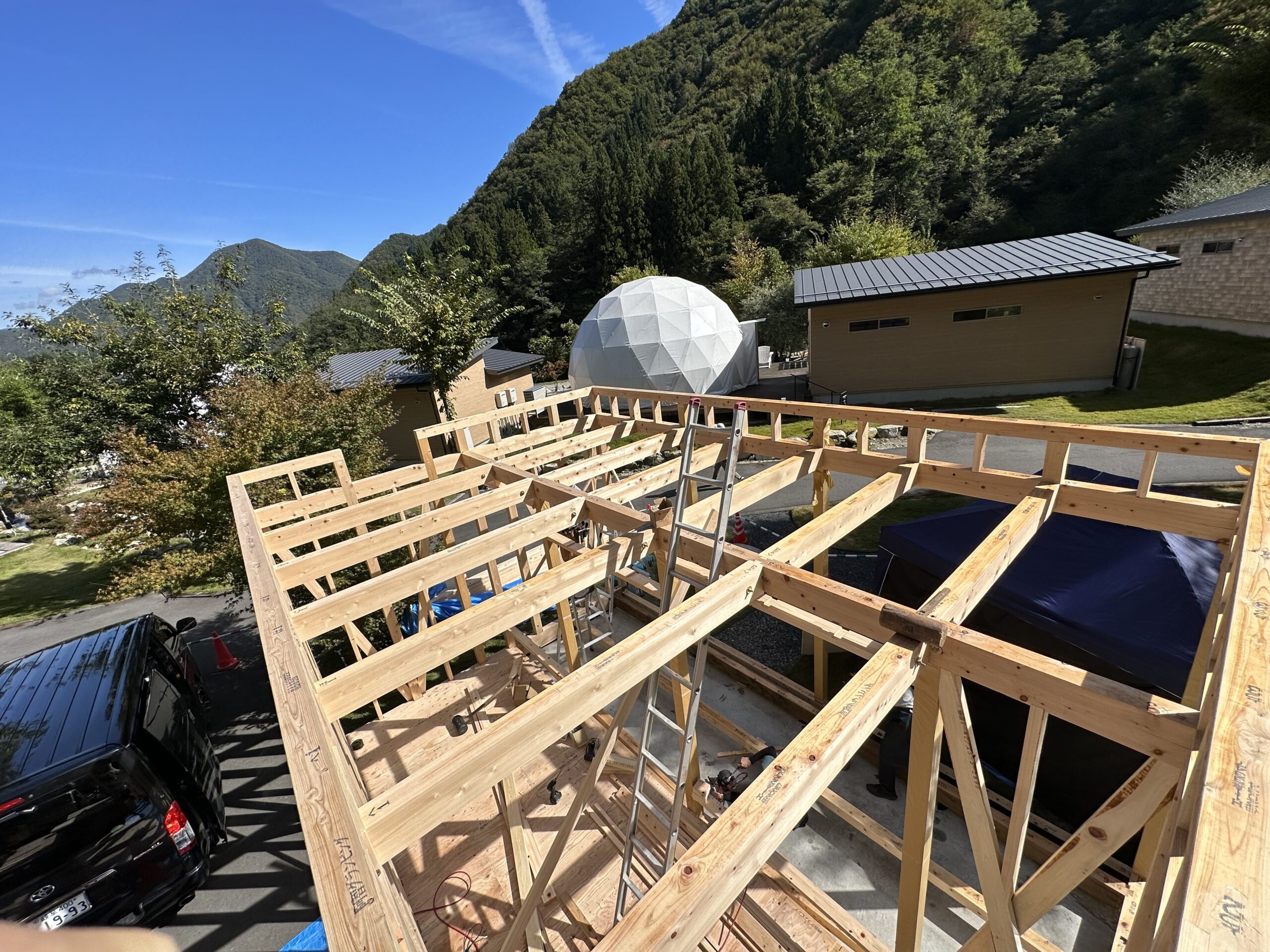 先日阿智グランピング場に建前のお手伝いに行ってきました。