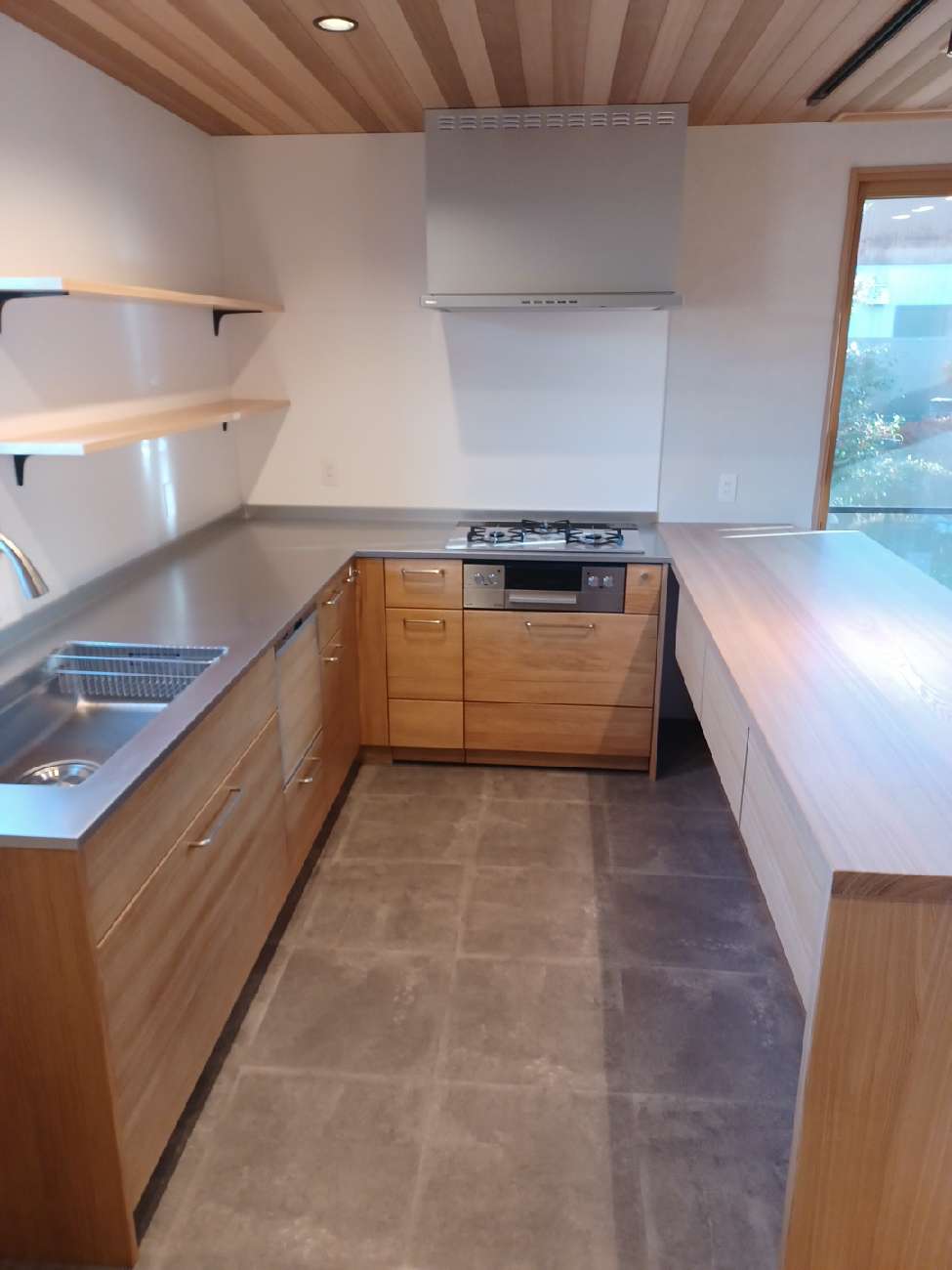 大きなタモの無垢カウンターも取り付けていますので、ここでお食事もできますね。