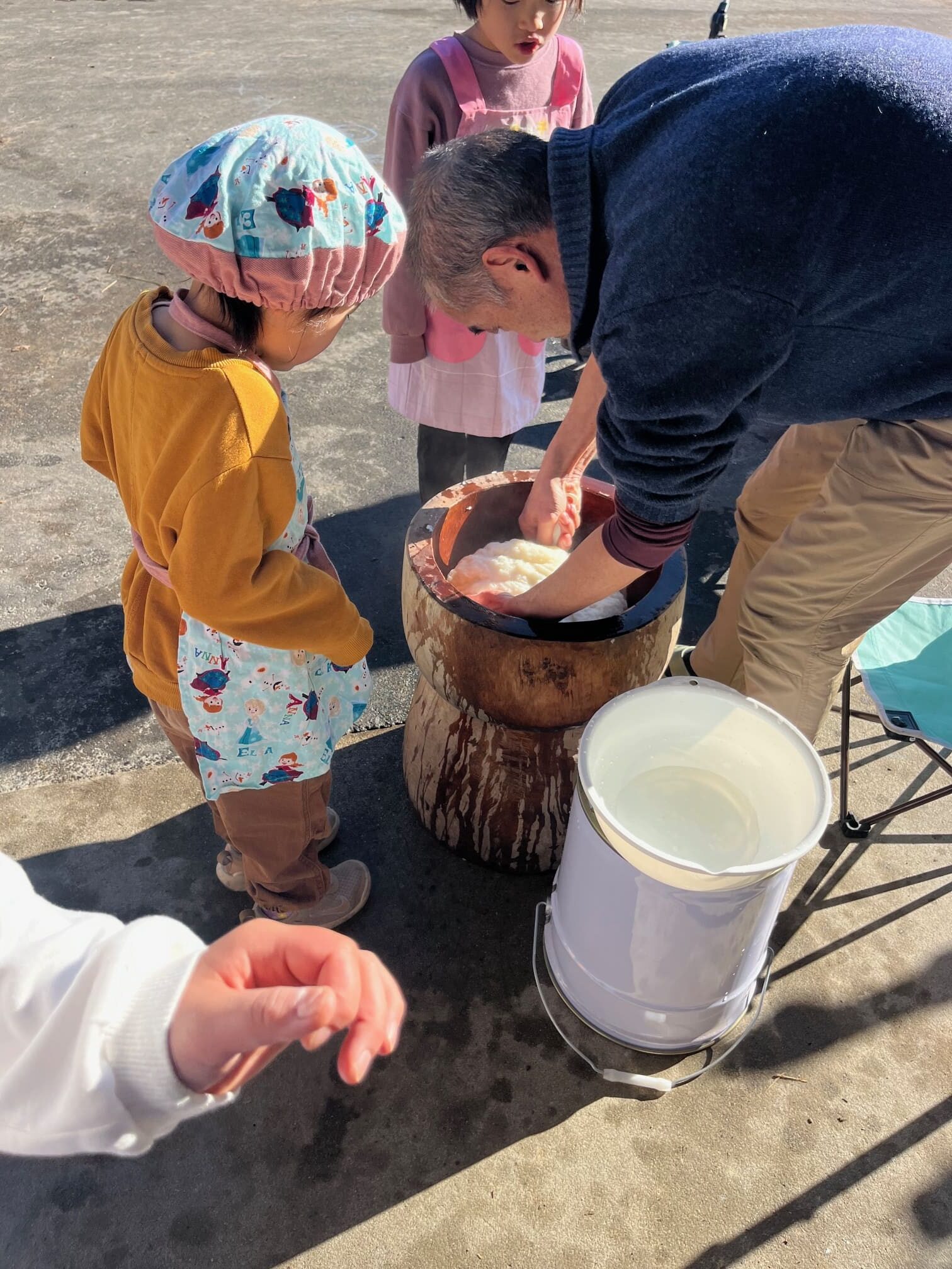 杵と木の臼をいただいたので、今年は木の臼で餅つきをしました。