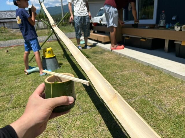この間のお盆休みに友達と流しそうめんをしました。
