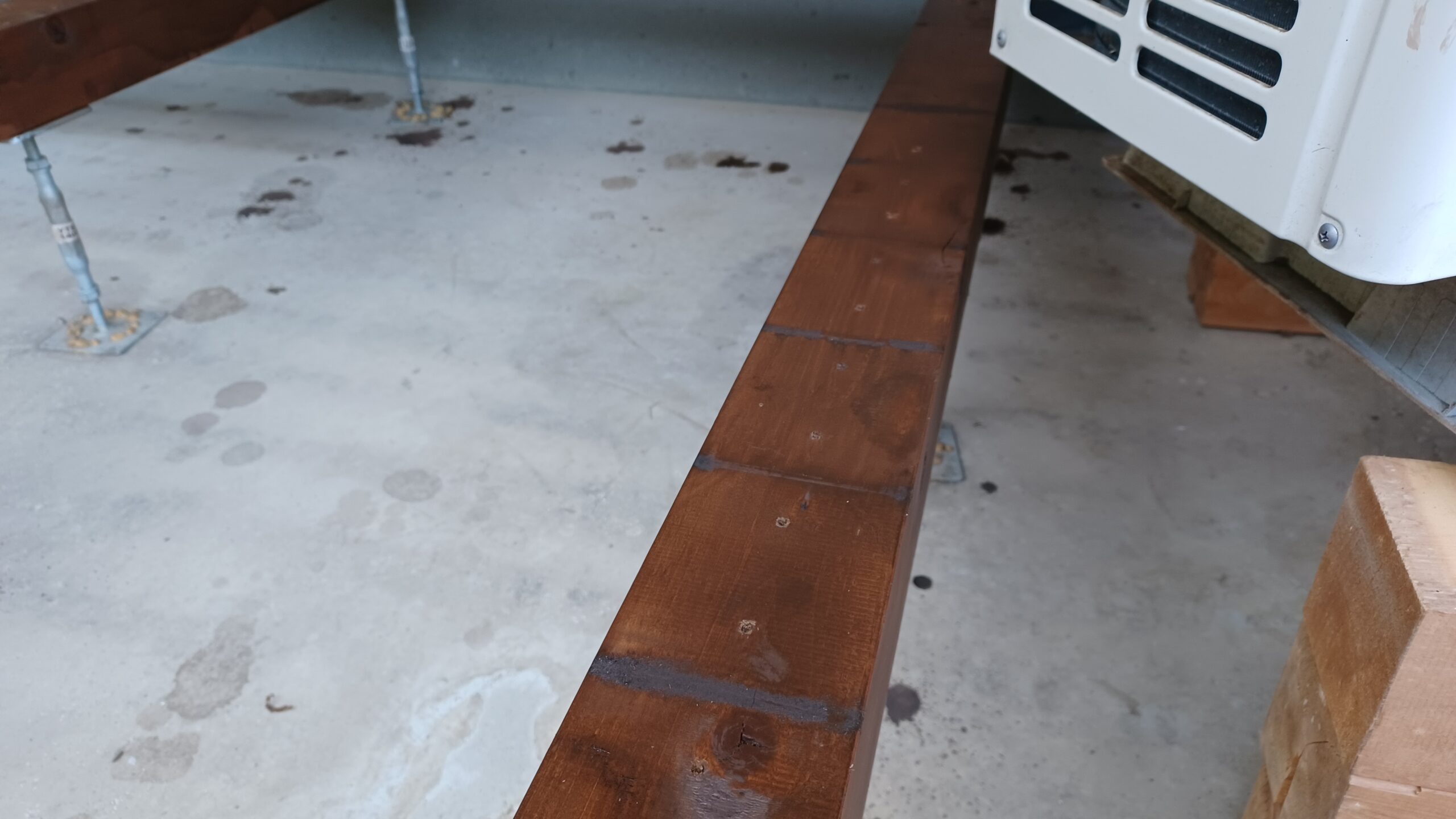 デッキ下の木材をふいてきれいにして塗装しました