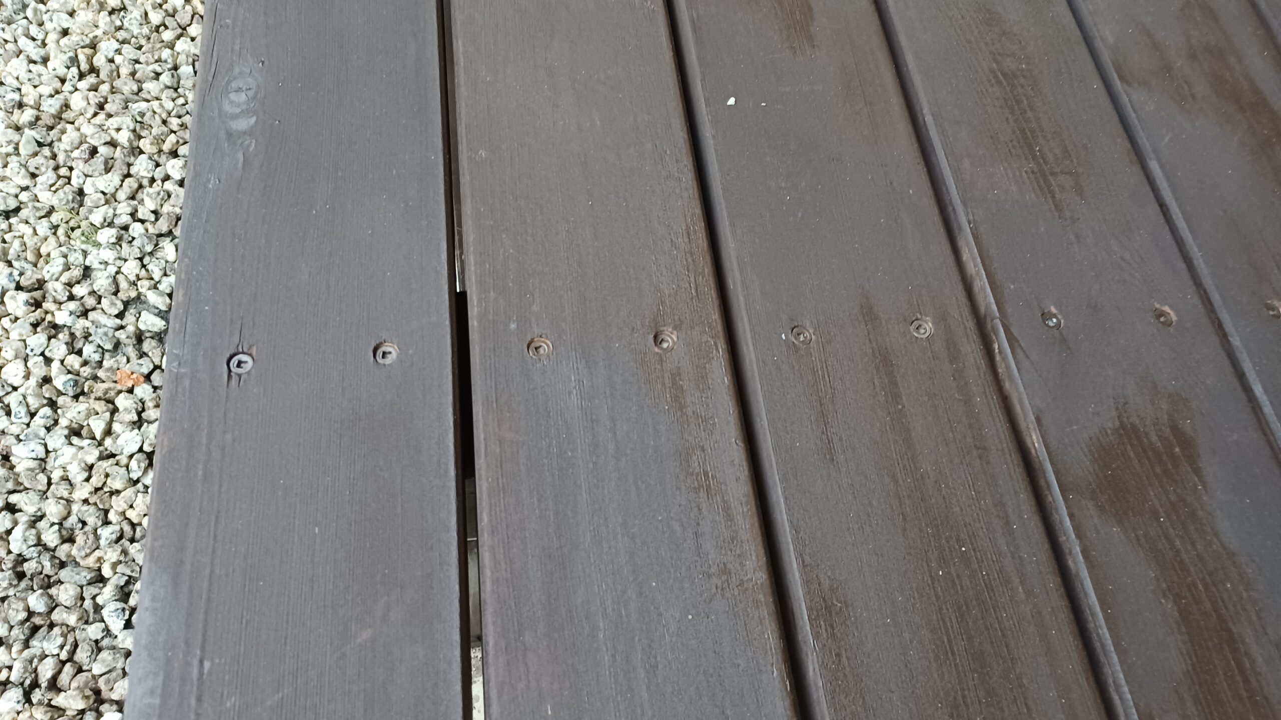 取れていないデッキ材はビスの頭をつぶしてしまっていました