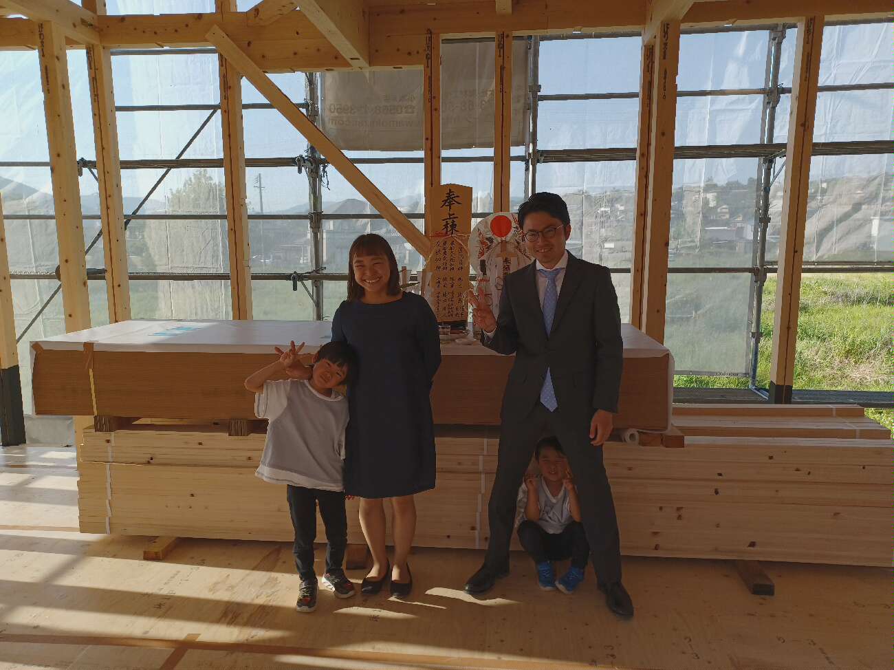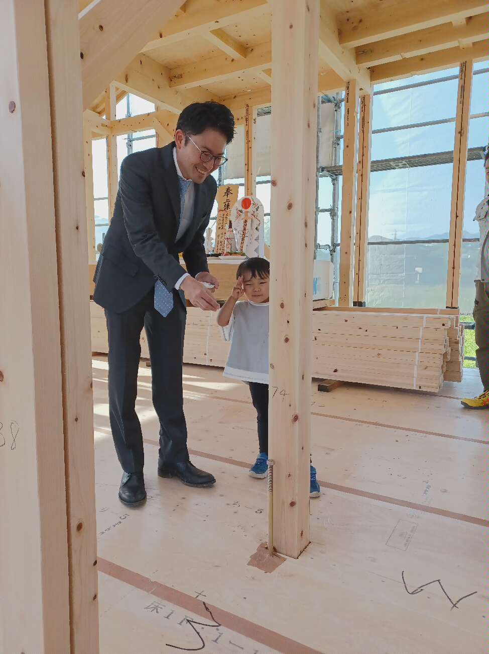 上棟式ではK様ご家族にご参加頂き、お子様も上手に出来ていました。