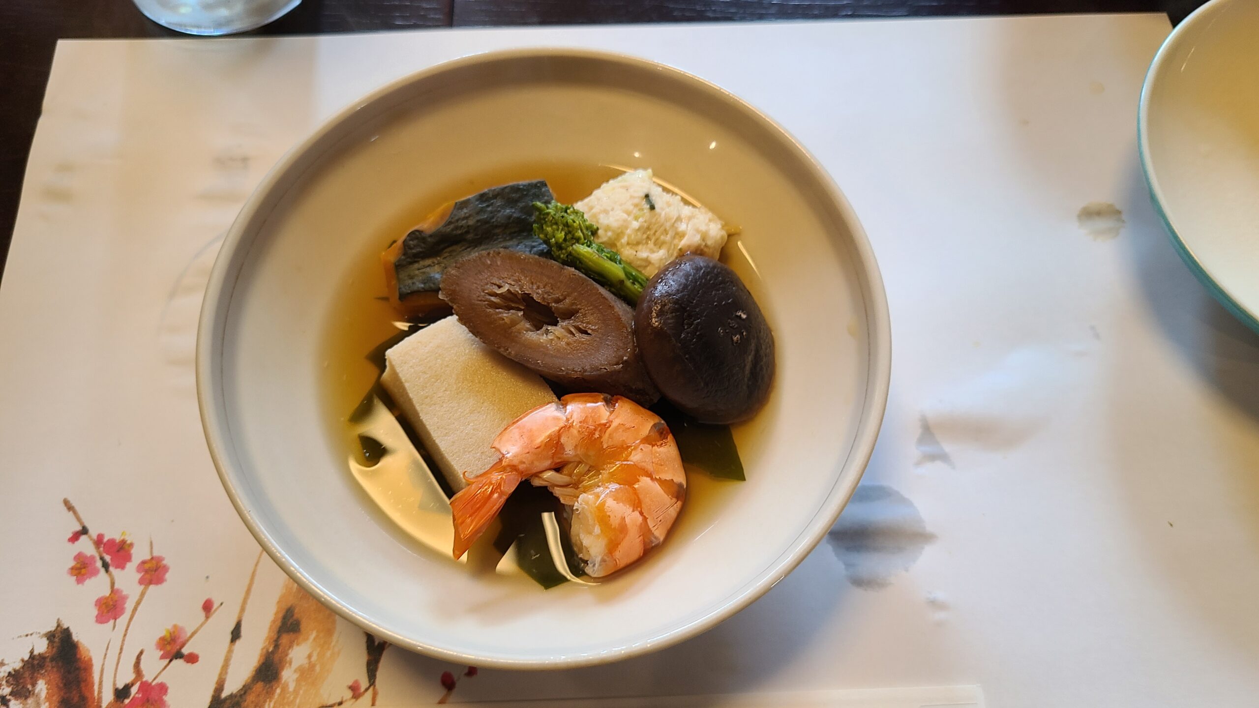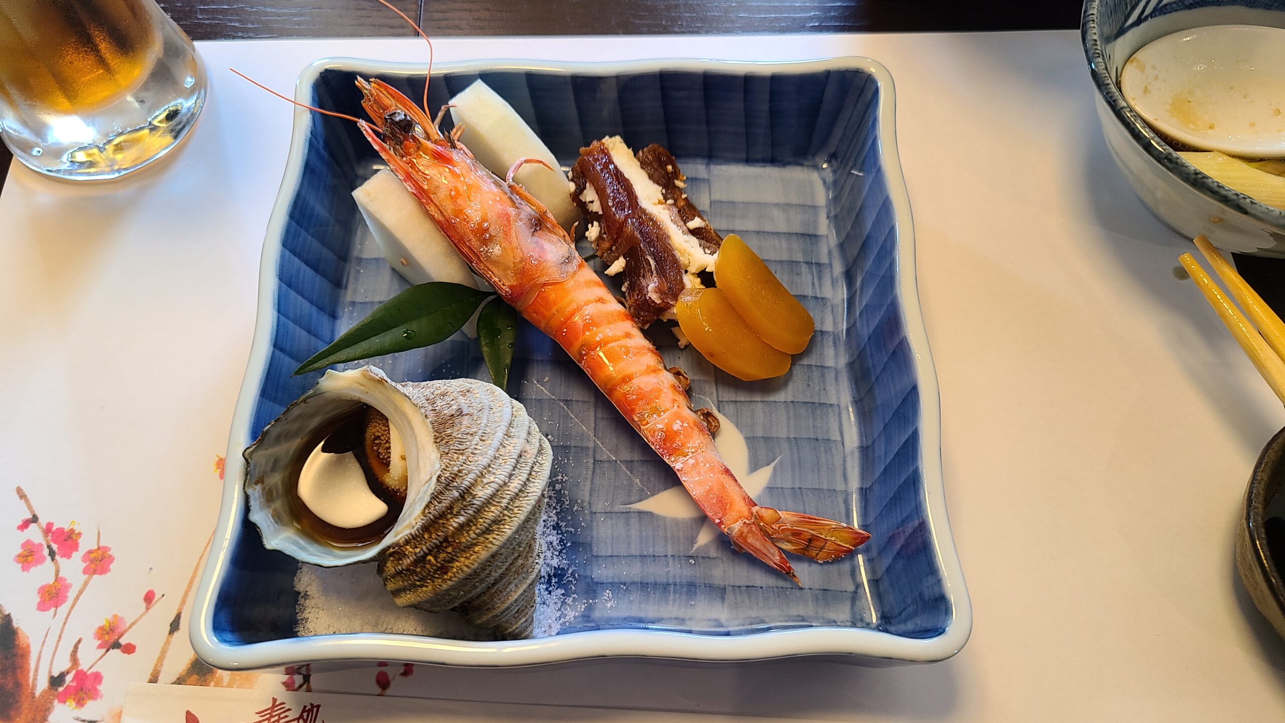 前菜の後は焼き物や汁物、煮物、ボイル、てんぷらなど、飽きの来ないラインナップでした。