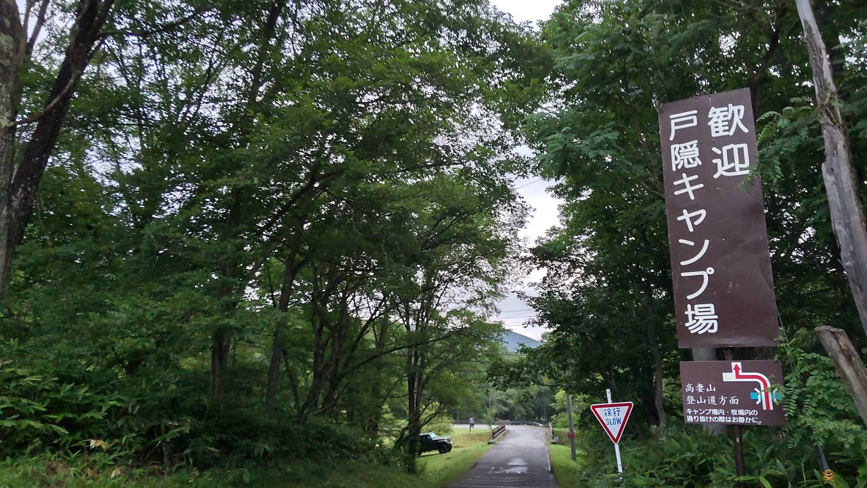 登山者専用の無料駐車場に車を停めて、戸隠キャンプ場の中を歩いていきます。