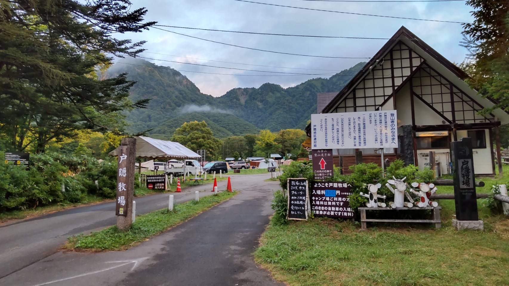 牧場入口で遭対協の方々に登山計画書の提出を求められます。難なくOK。