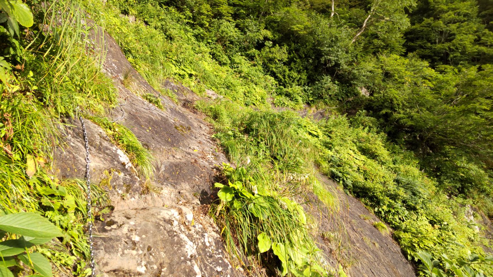 滝の横を登ったり、岩場をトラバースしていきます。落ちたら見えなくなります・・・💦