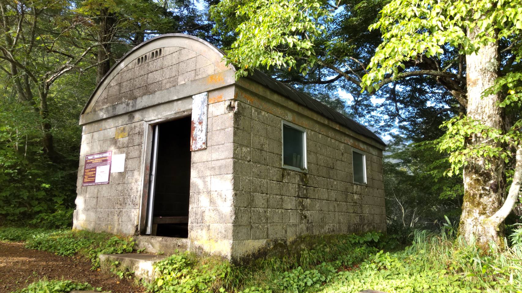 沢沿いの登山道を、アブと格闘しながら一不動避難小屋に到着。