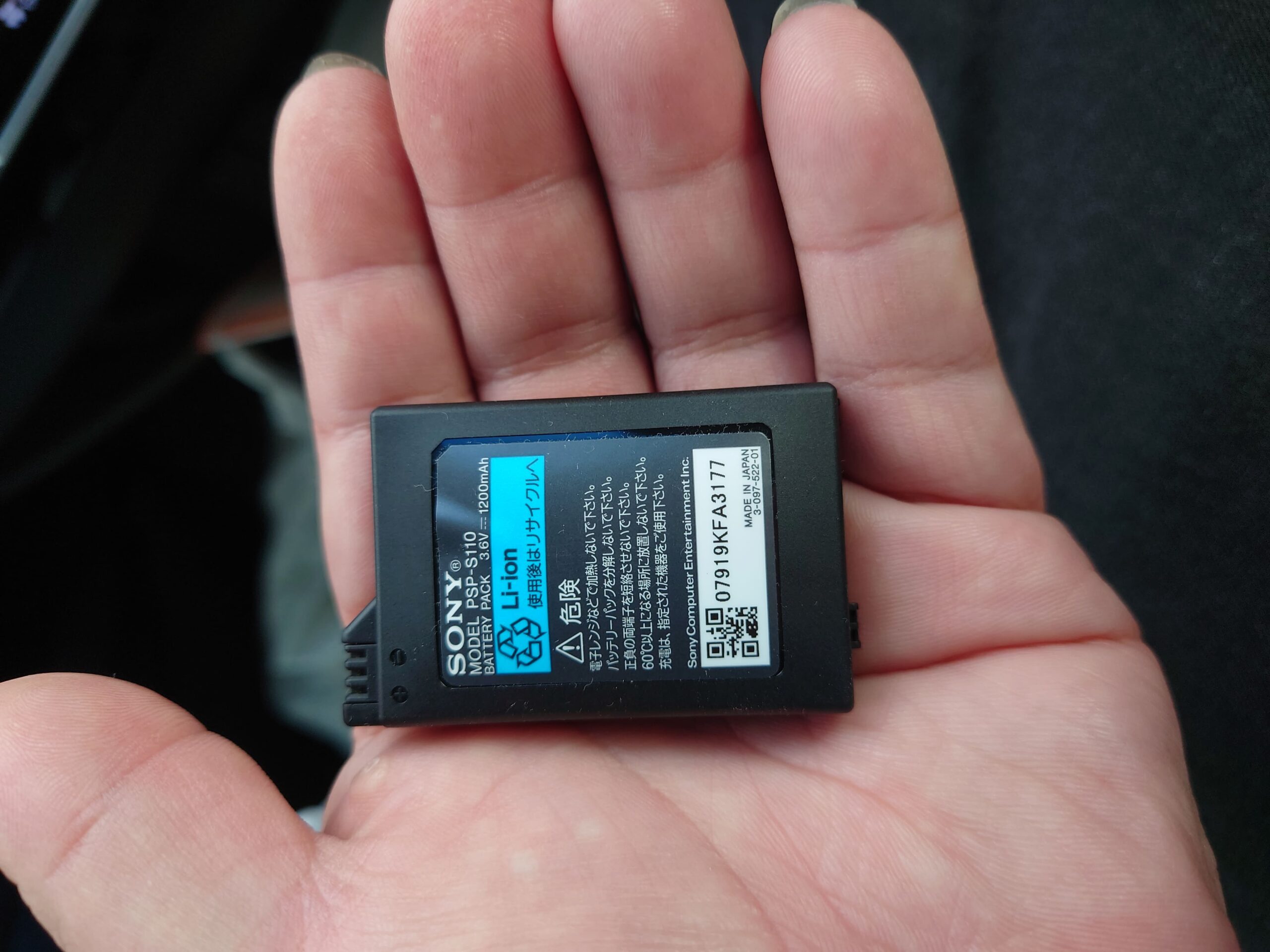 携帯ゲームのバッテリー(リチウムイオン電池)が膨らんでカバーが外れている。
