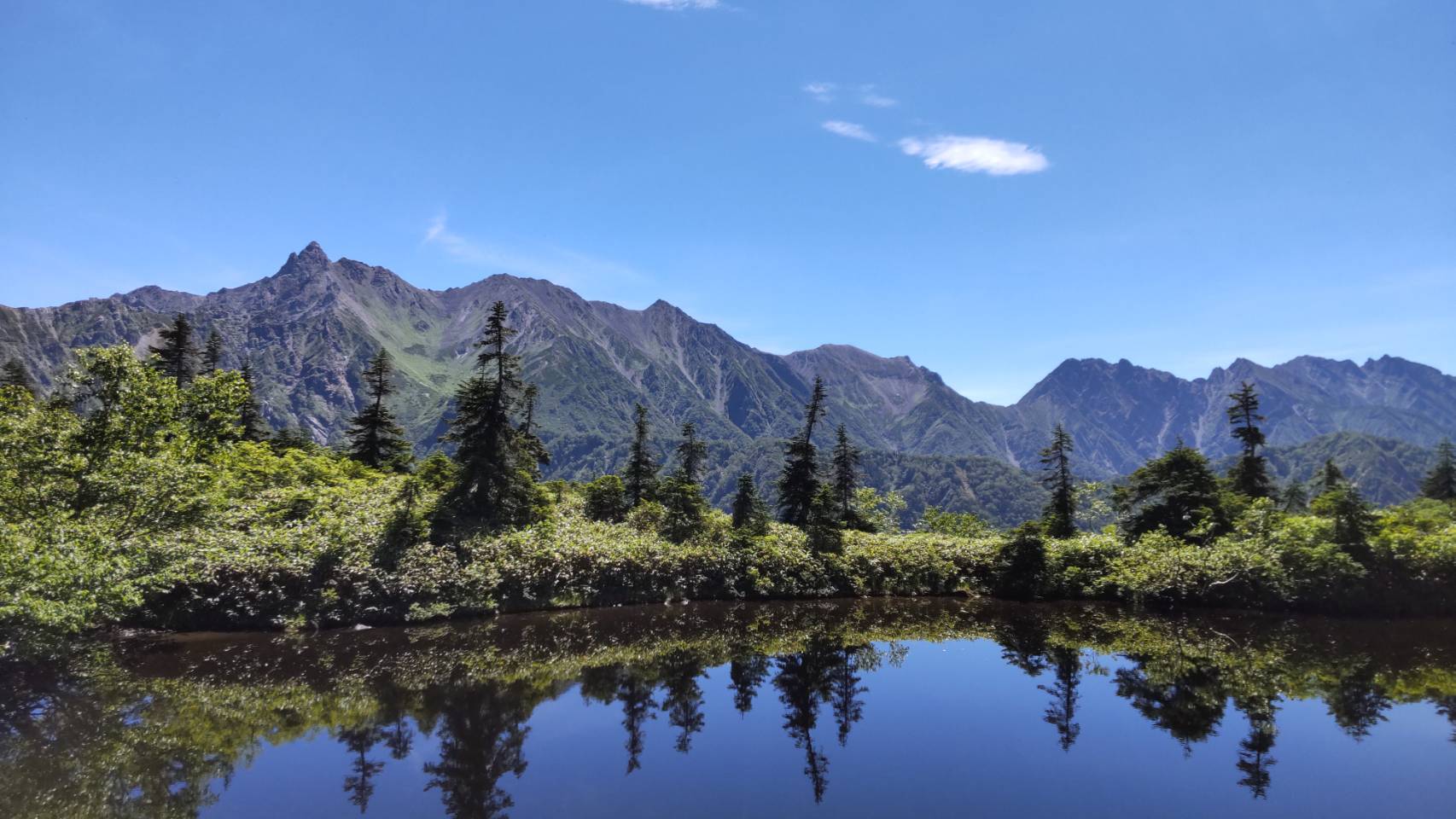 弓折乗越までは急登が続きますが、途中の鏡池から見る風景や