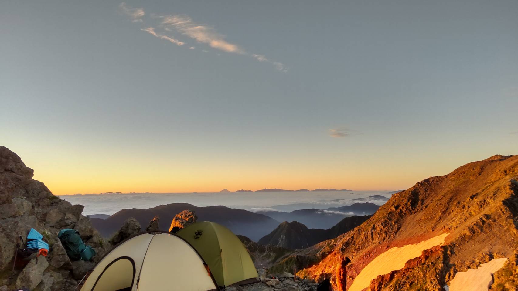 3日目、御来光と雲海から頭を出す富士山をテント場から見て下山します。