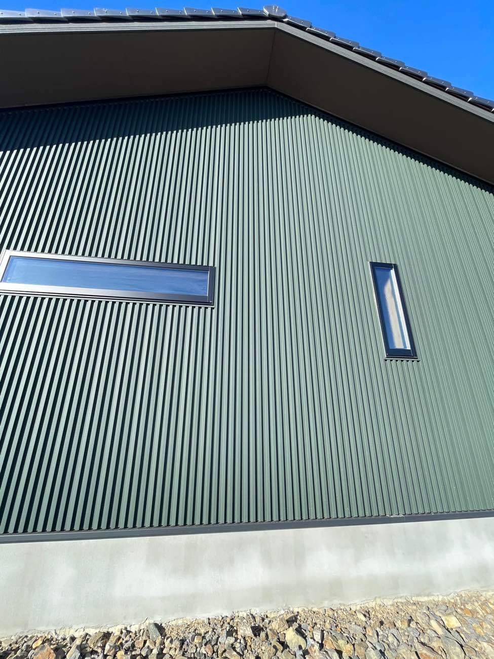 ↑外壁ガルバリウム鋼板(モスグリーン色)