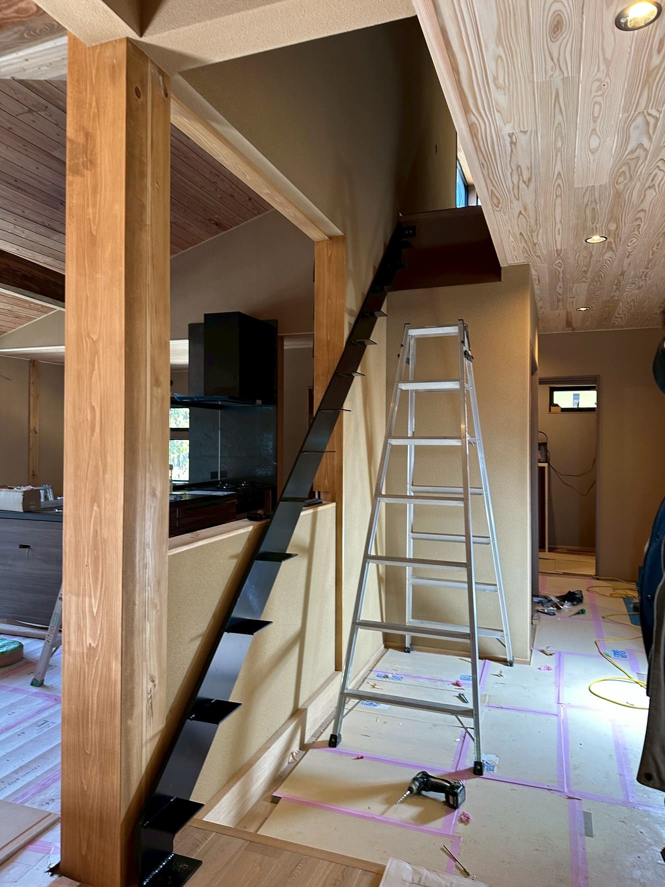 内装の壁も完了し、鉄骨階段を取り付けました!