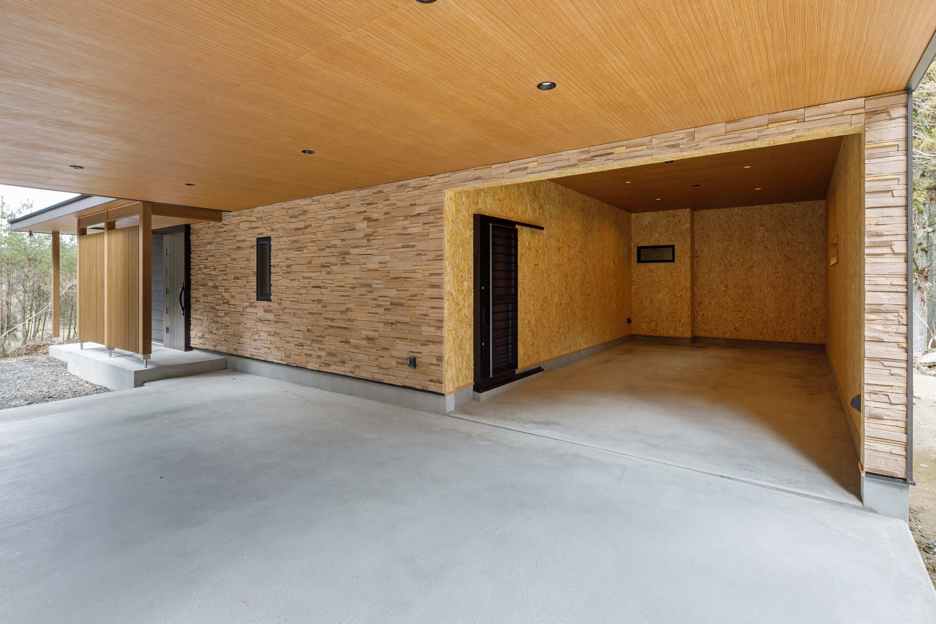 雨が降っても濡れず、ゆったり荷物の積み下ろしができるインナーガレージ!