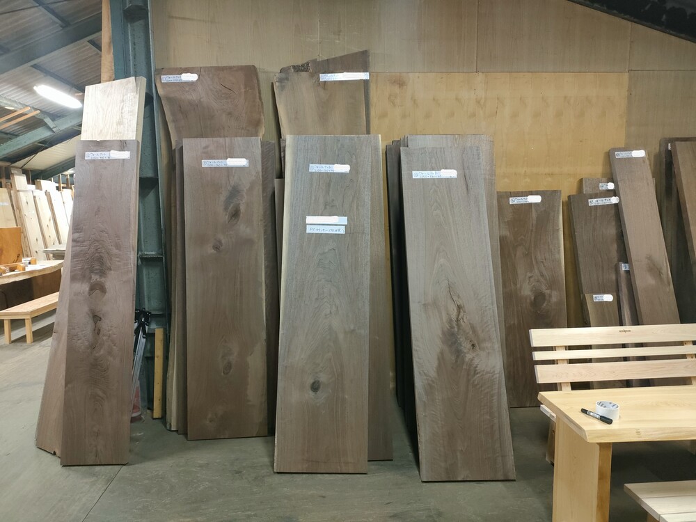 久しぶりの本社でしたが、無垢板コーナーの様子が変わっていました。