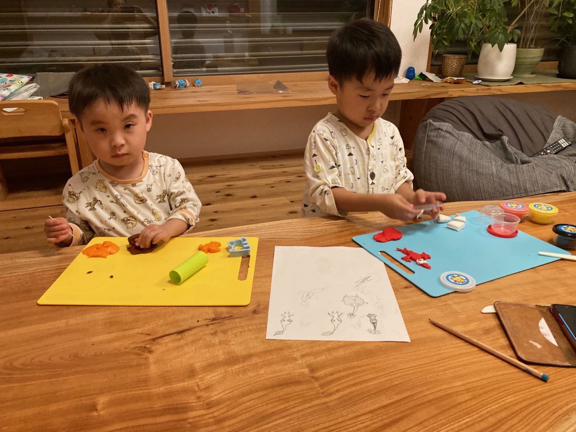 作りたいと言ったので、家にある粘土で一生懸命作っていました✨