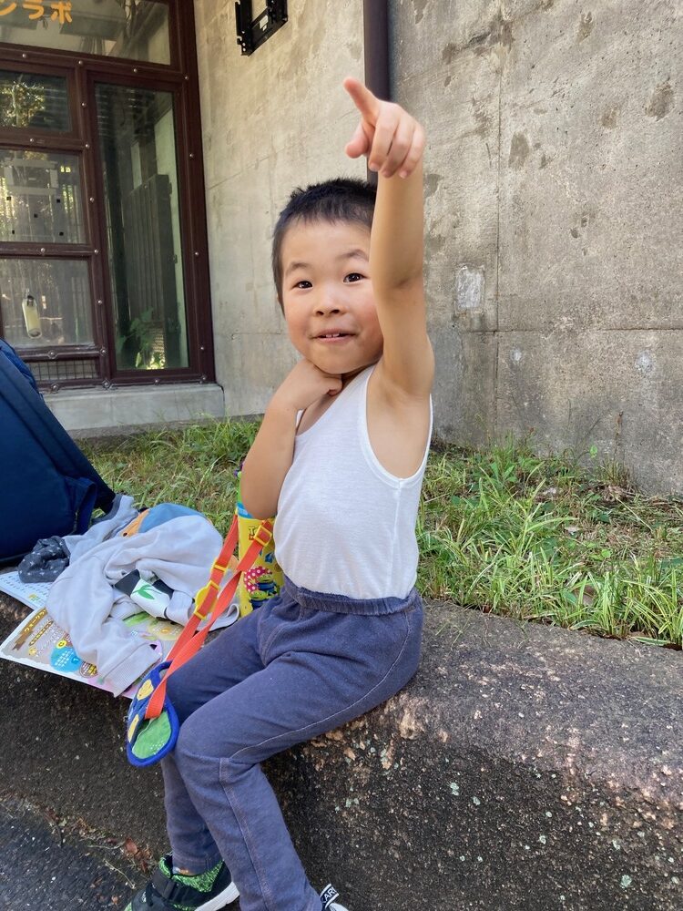 幼稚園の文化祭でお買い物した、アルミ製のさんまを持って見学中🐟