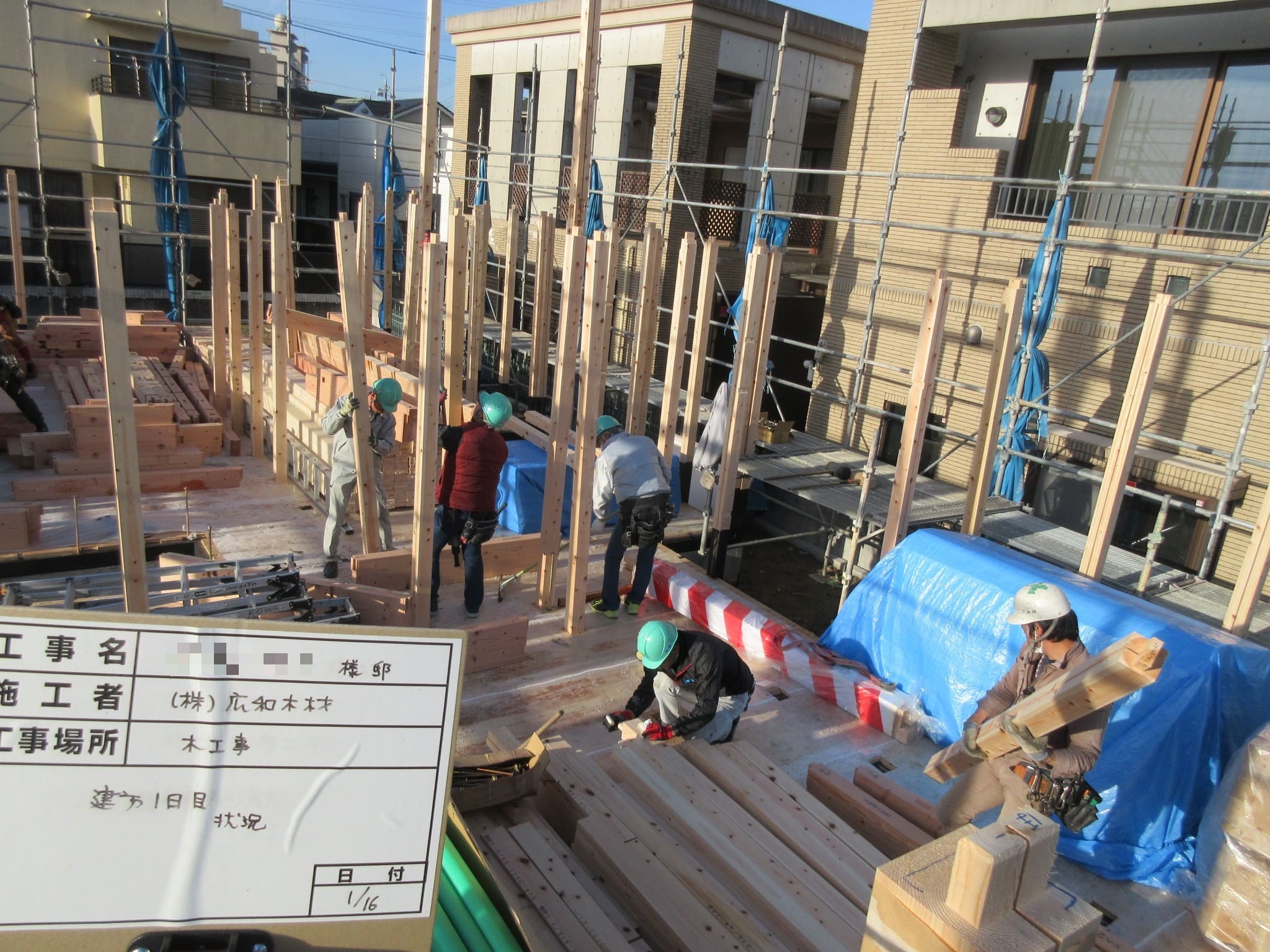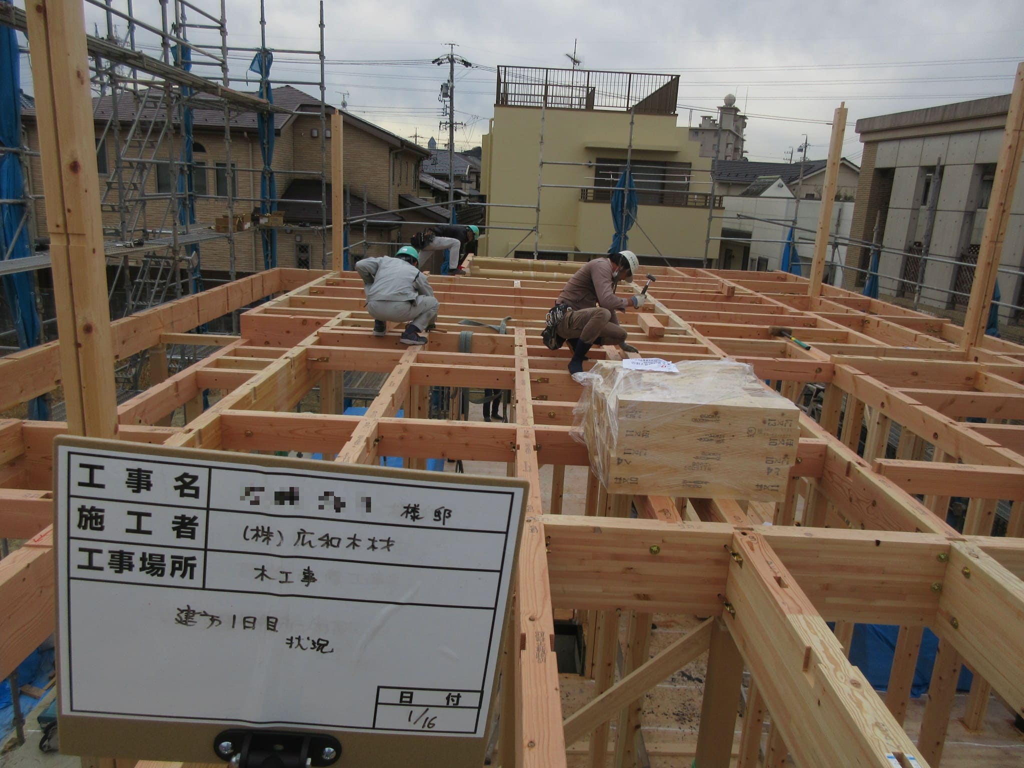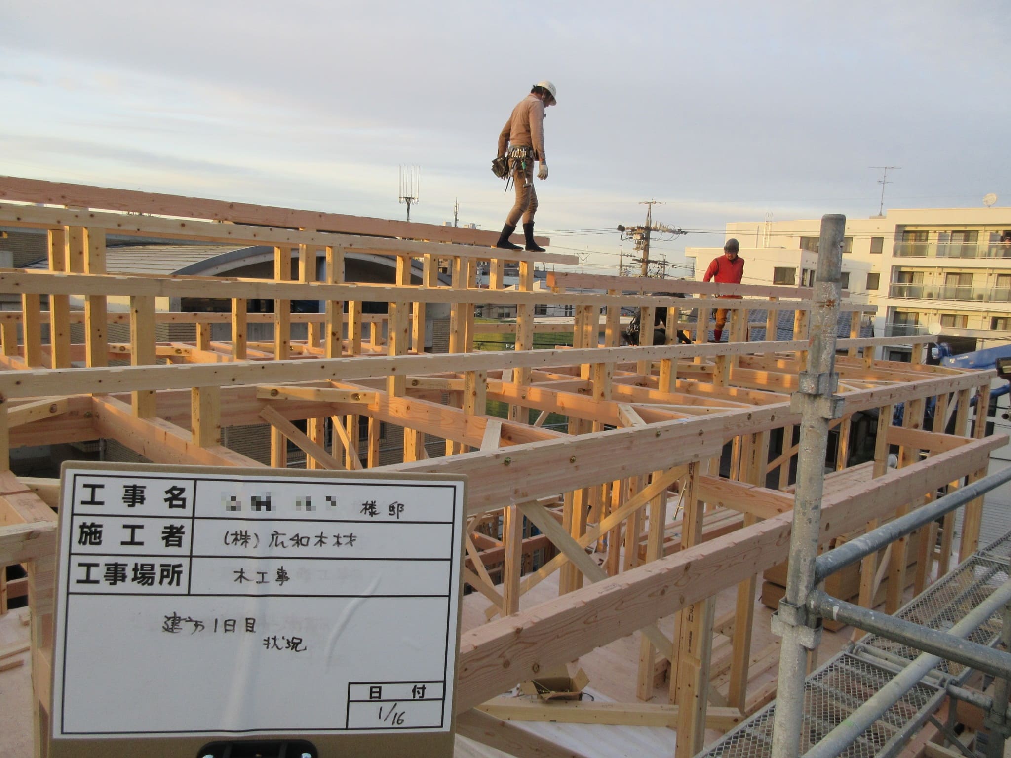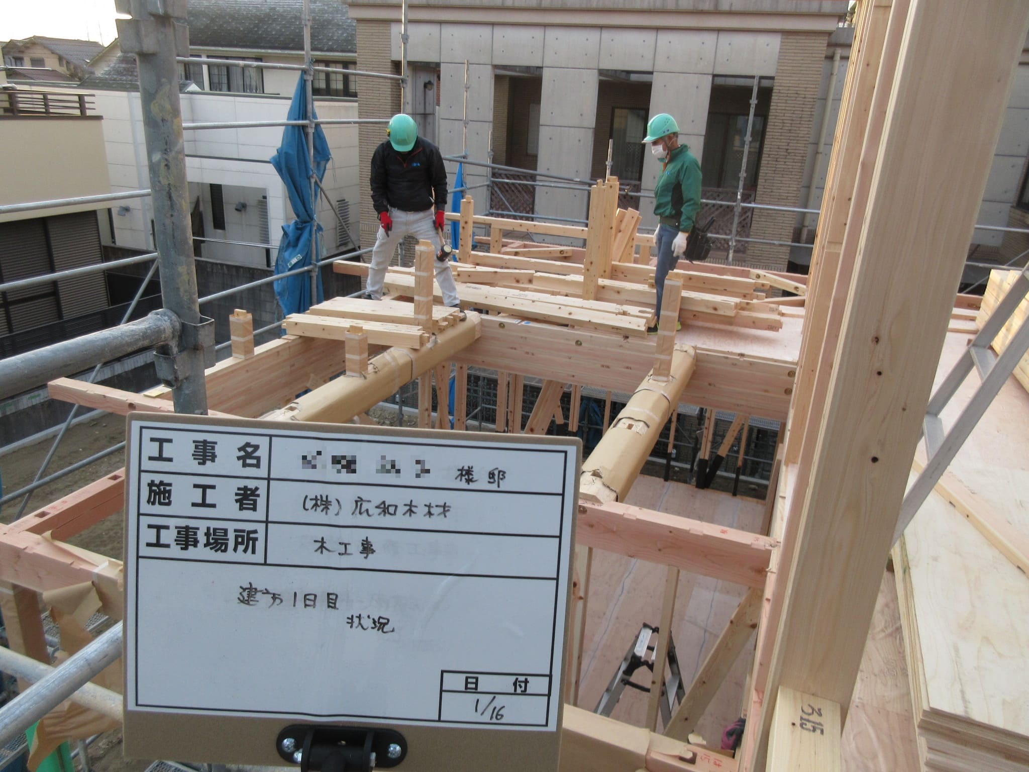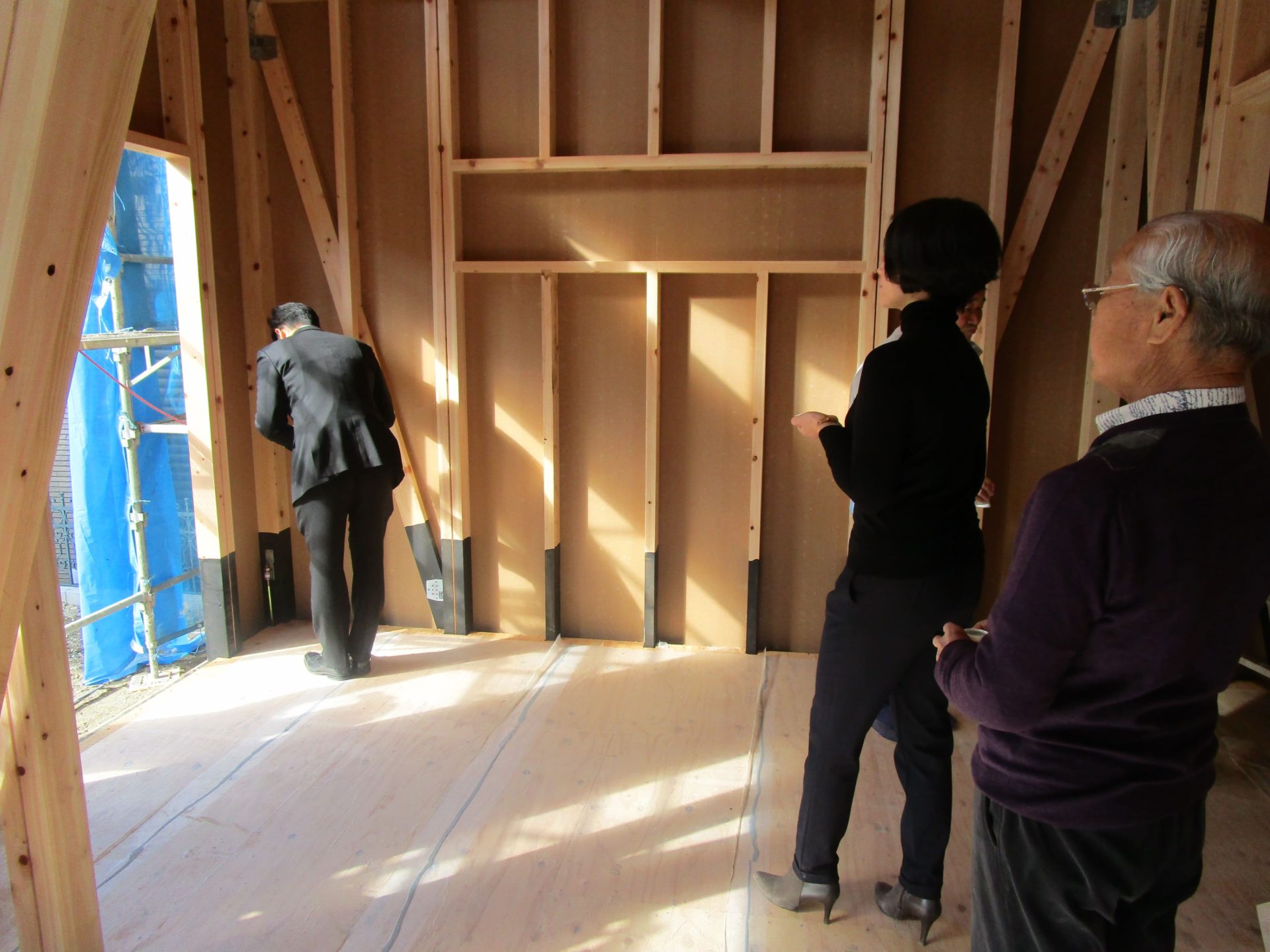 先日、中津川本社にて春日井市にて工事中のお客様の木材選びに