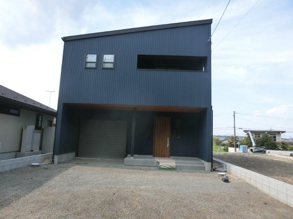外構も可愛いタイルのガーデンパンや広い駐車場と草の生えない人工芝の庭。