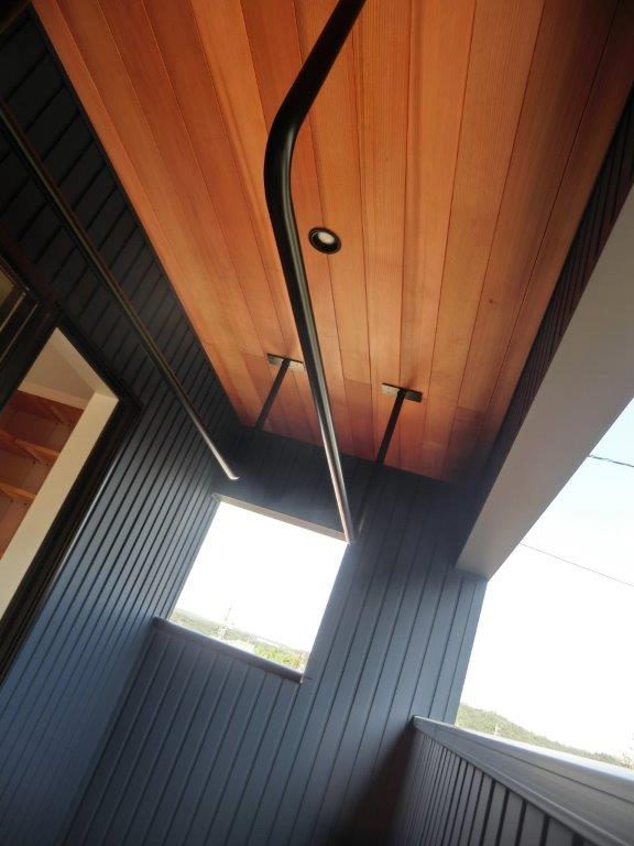天井も杉の羽目板貼り、壁は当社が住宅でも採用していますチャフウォールにしました。