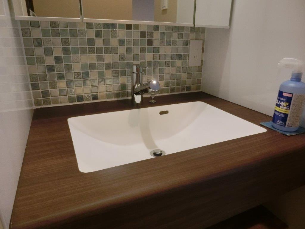 洗面もこだわったモザイクタイルがアクセントになっています。