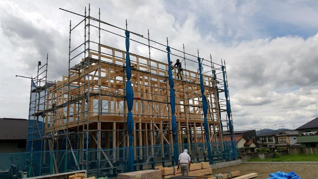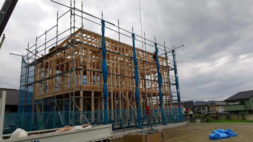 当日朝は天気も良く上棟日和!しかし午後より天気が・・・