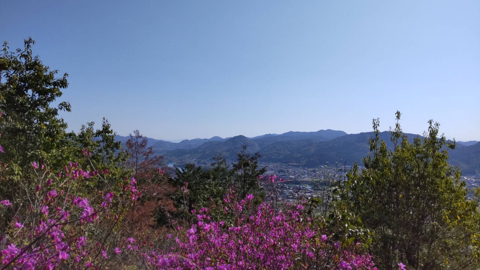 ミツバツツジの咲く登山道をゆっくり登っていきますと