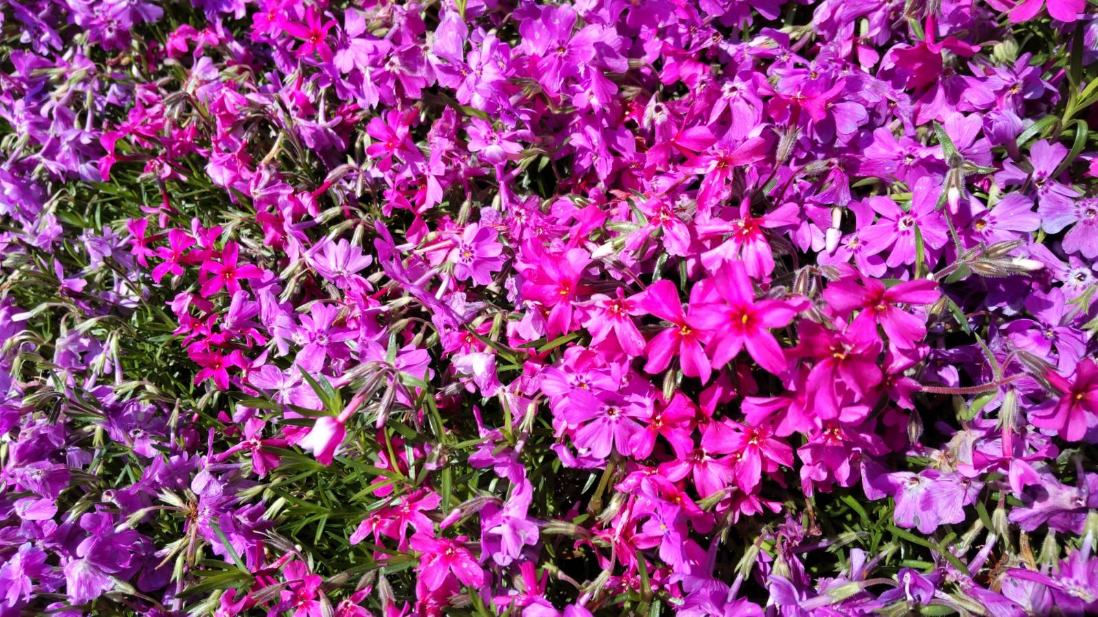 駐車場隣の公園も少し散策してみます。芝桜やシャガの花が咲いてました。