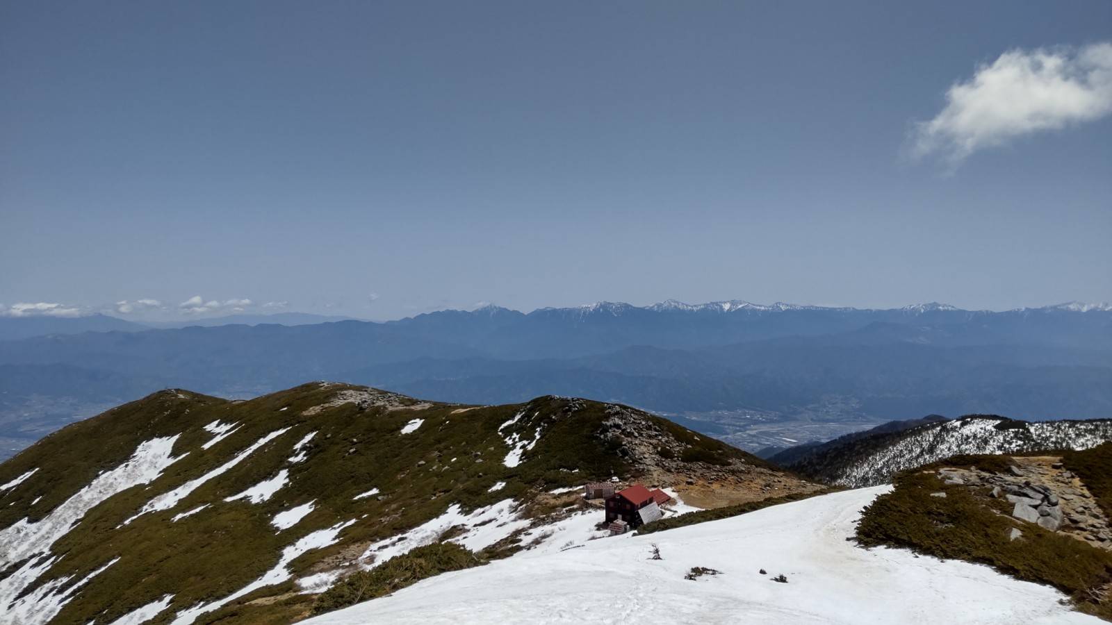稜線からは木曽駒ケ岳や南アルプス、八ヶ岳が見えます。