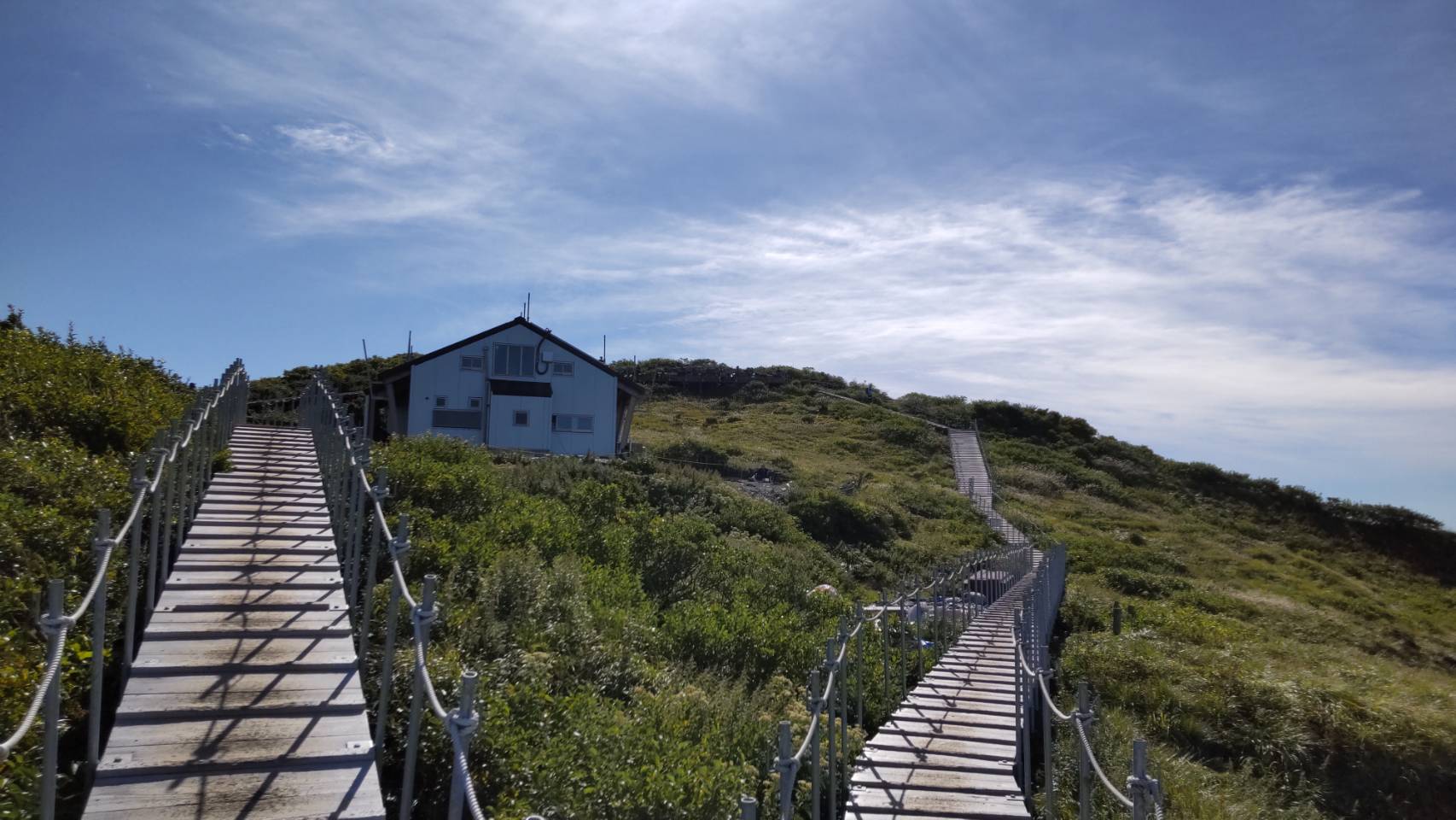 九合目あたりから木道となり、緩やかに登っていくと